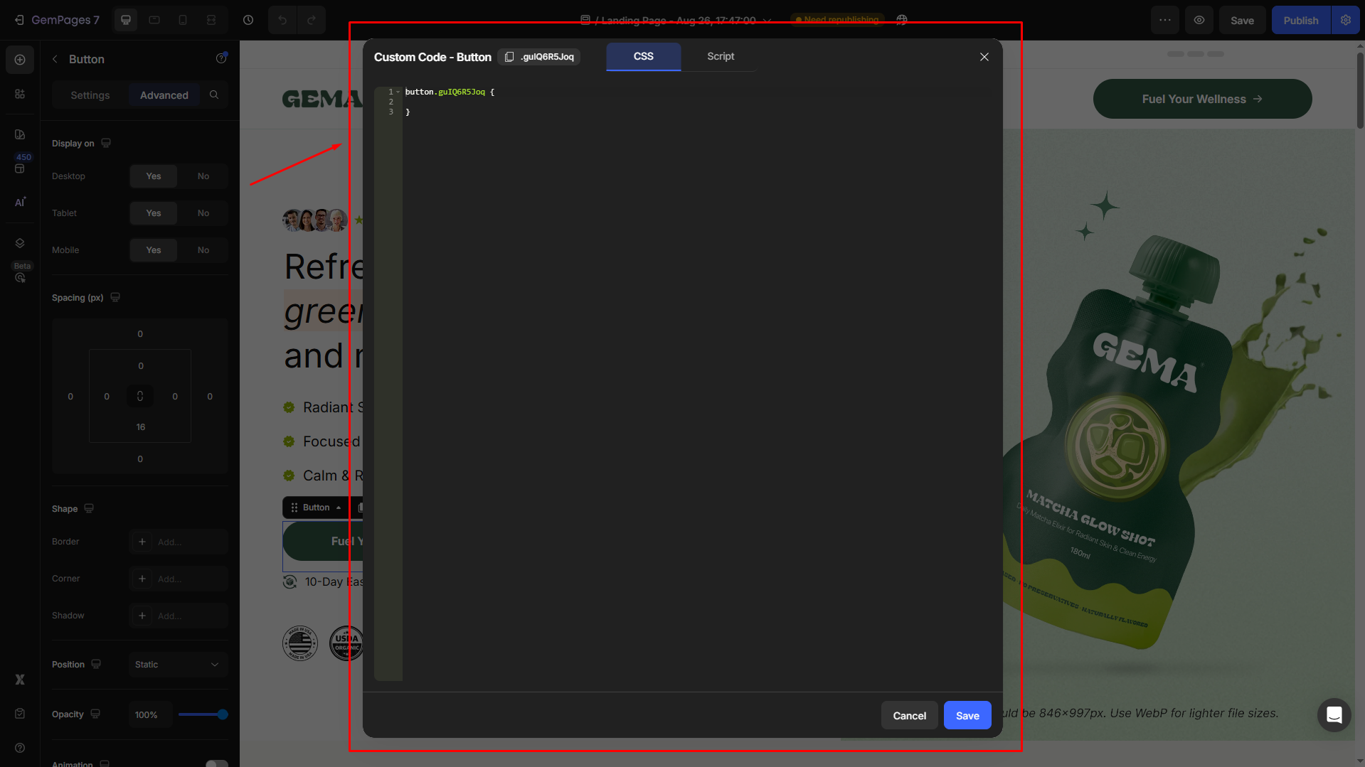 GemPages automatically supports many visual settings through its drag-and-drop editor. However, for advanced or unique designs, adding custom CSS and JavaScript gives you greater flexibility and precision.