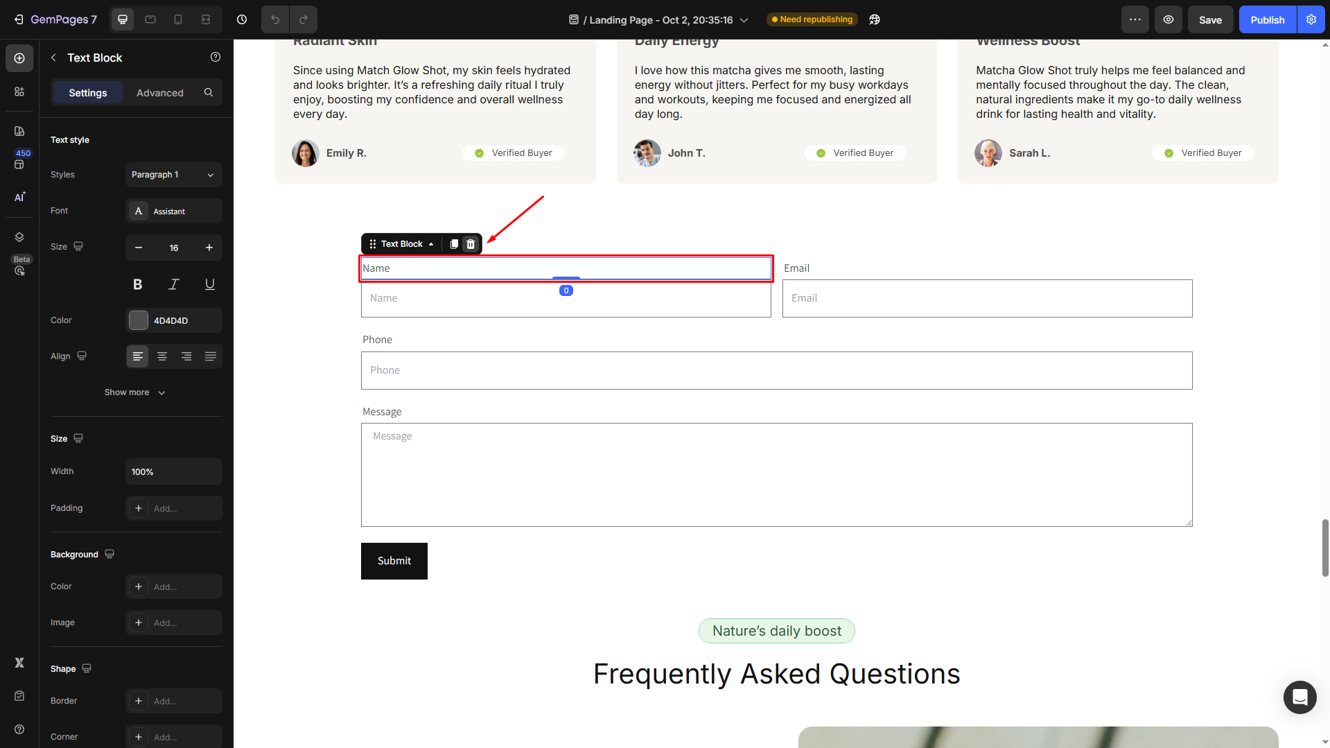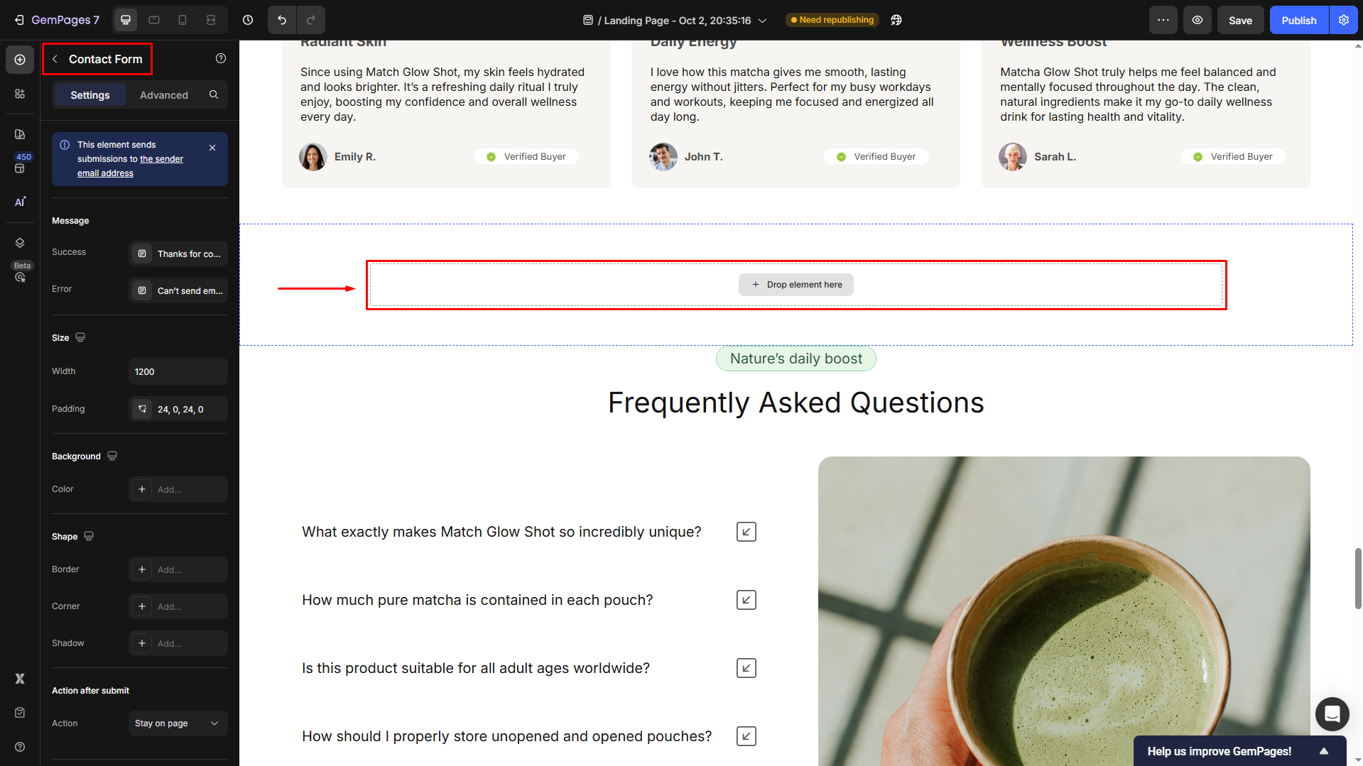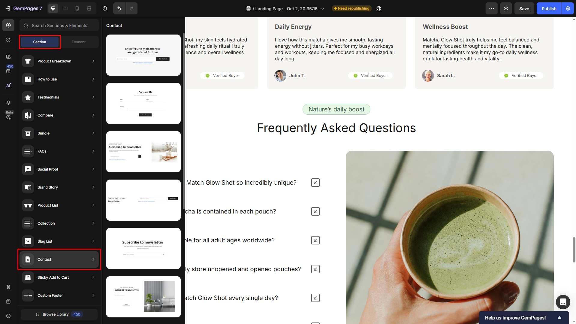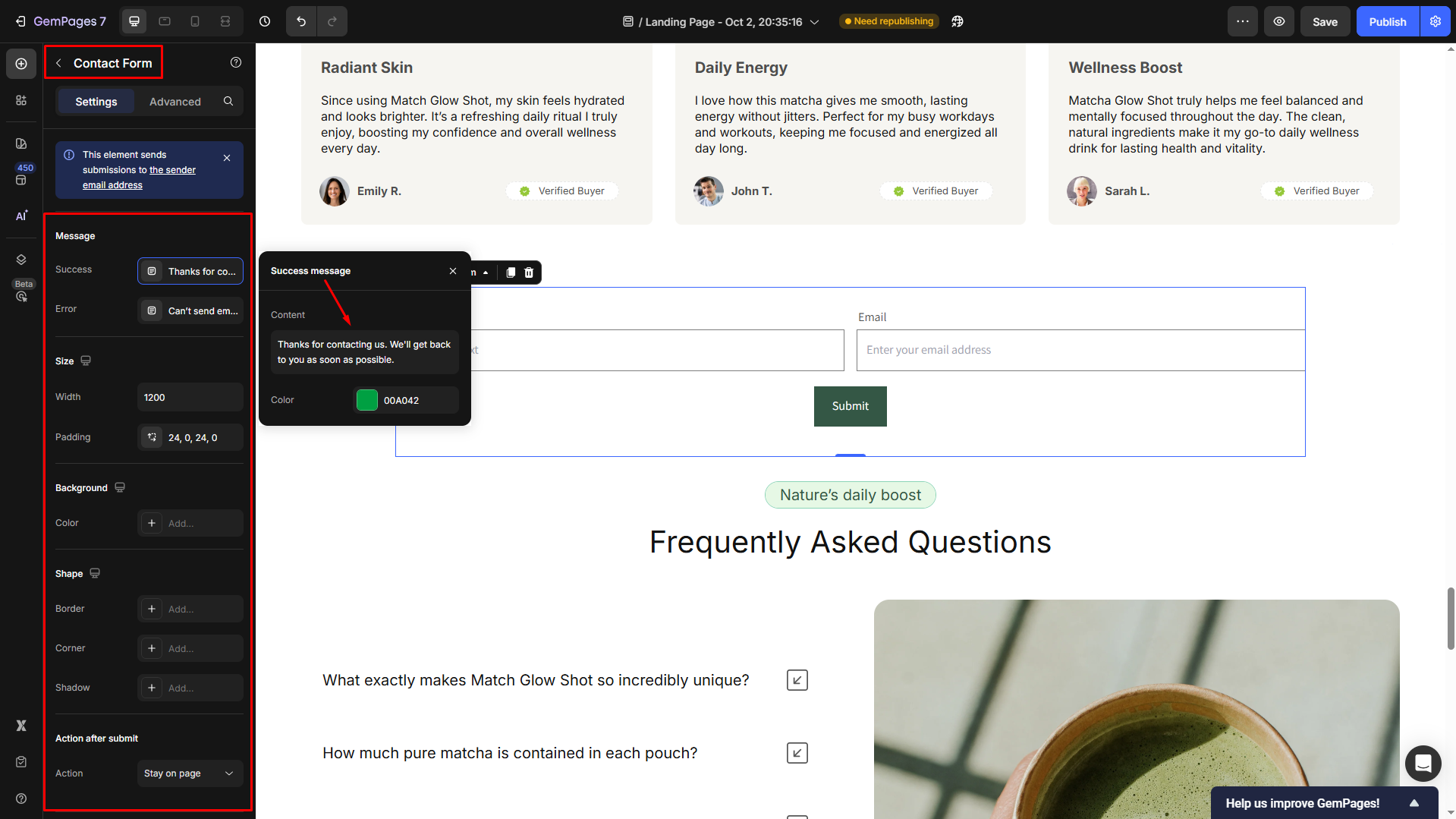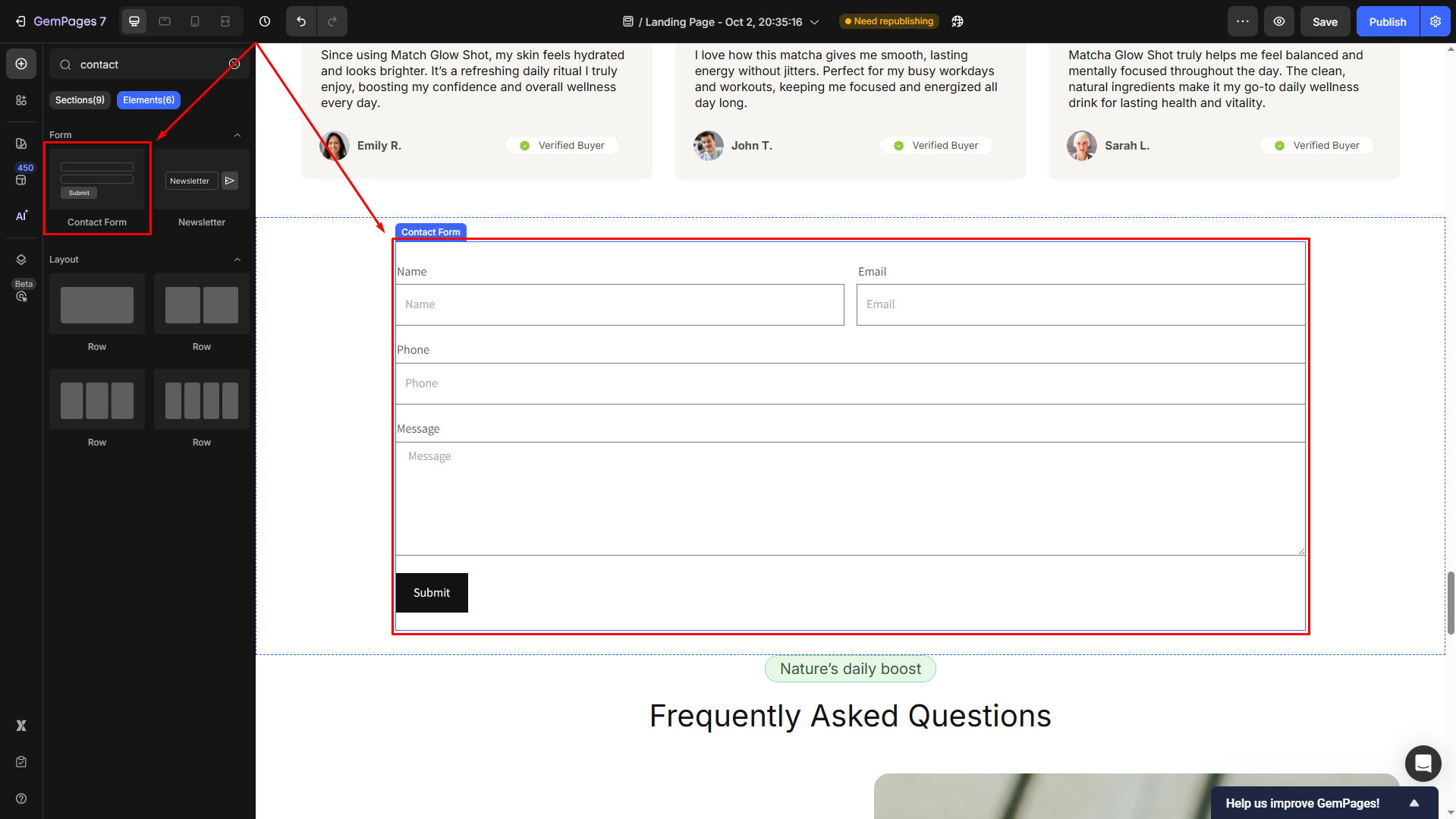 Step 3: You can customize it your way, or simply save and publish the page with this pre-built contact section.