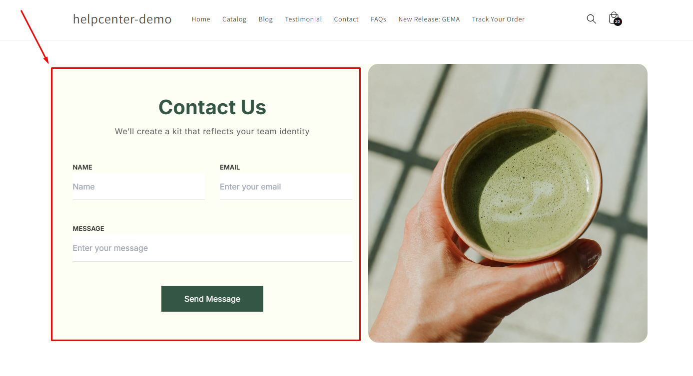 The contact form element will send data to the Shopify Admin. For more detailed information about the Contact Form Element, click here.
