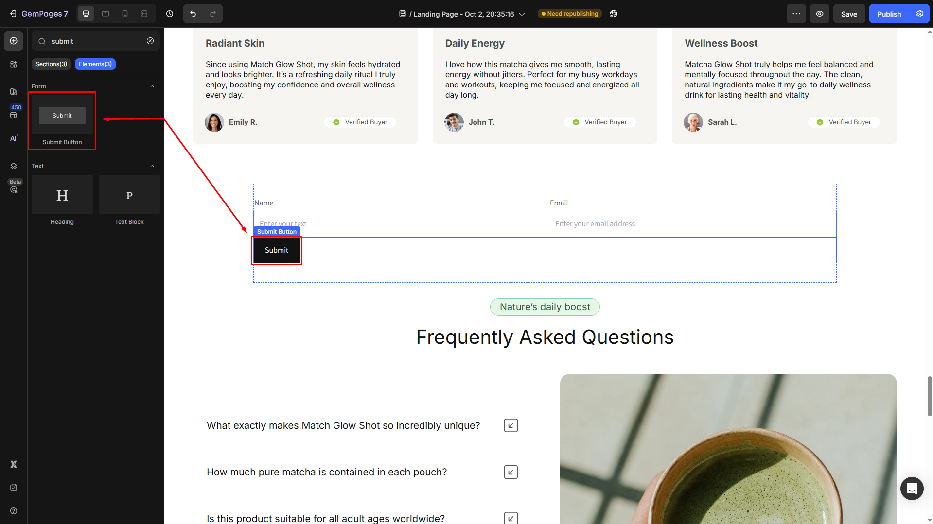 Once located in the editor, follow these steps to design a contact form section with GemPages’ Contact Form Element.