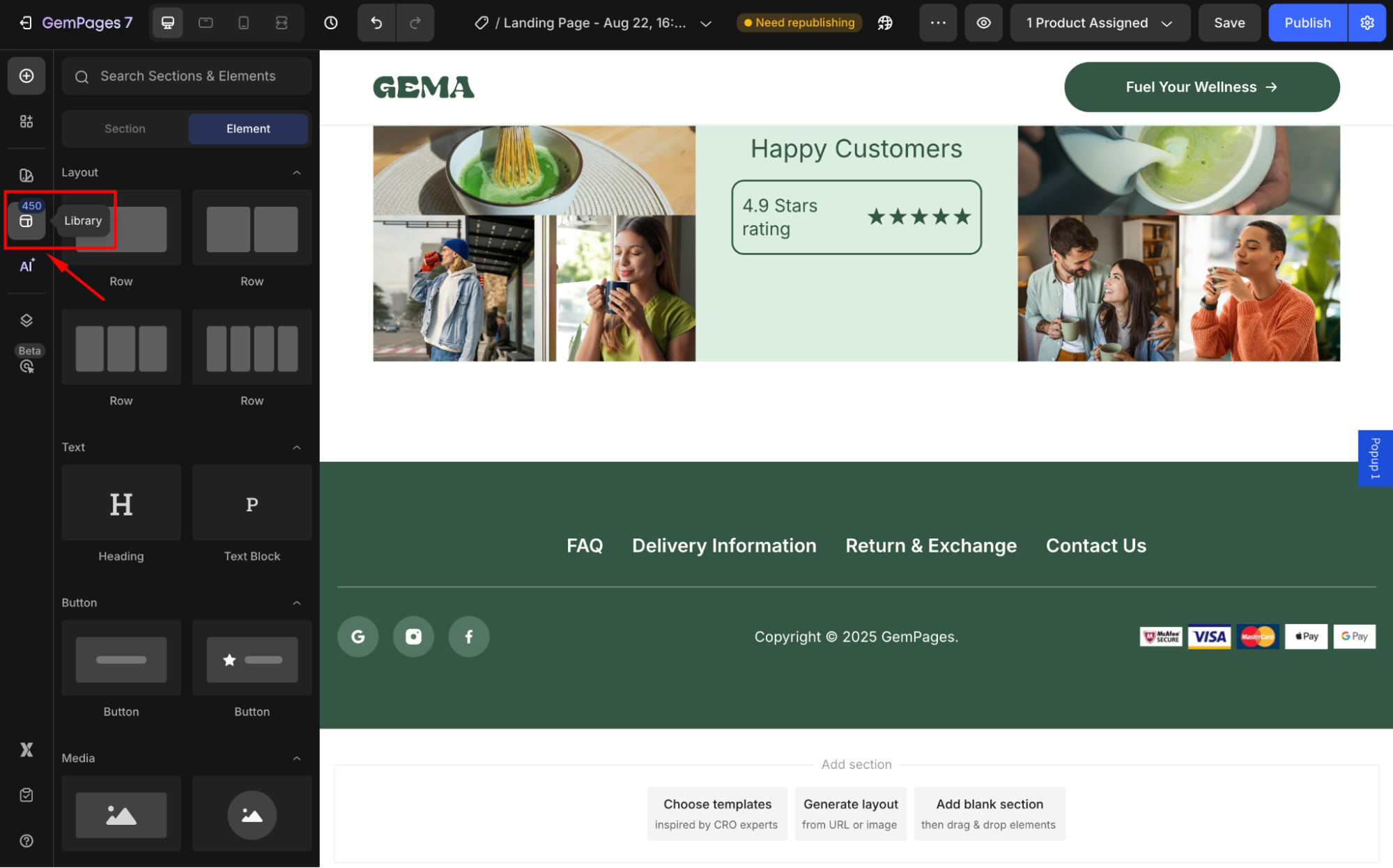You can also create a contact form from the pre-built sections in the GemPages Library: