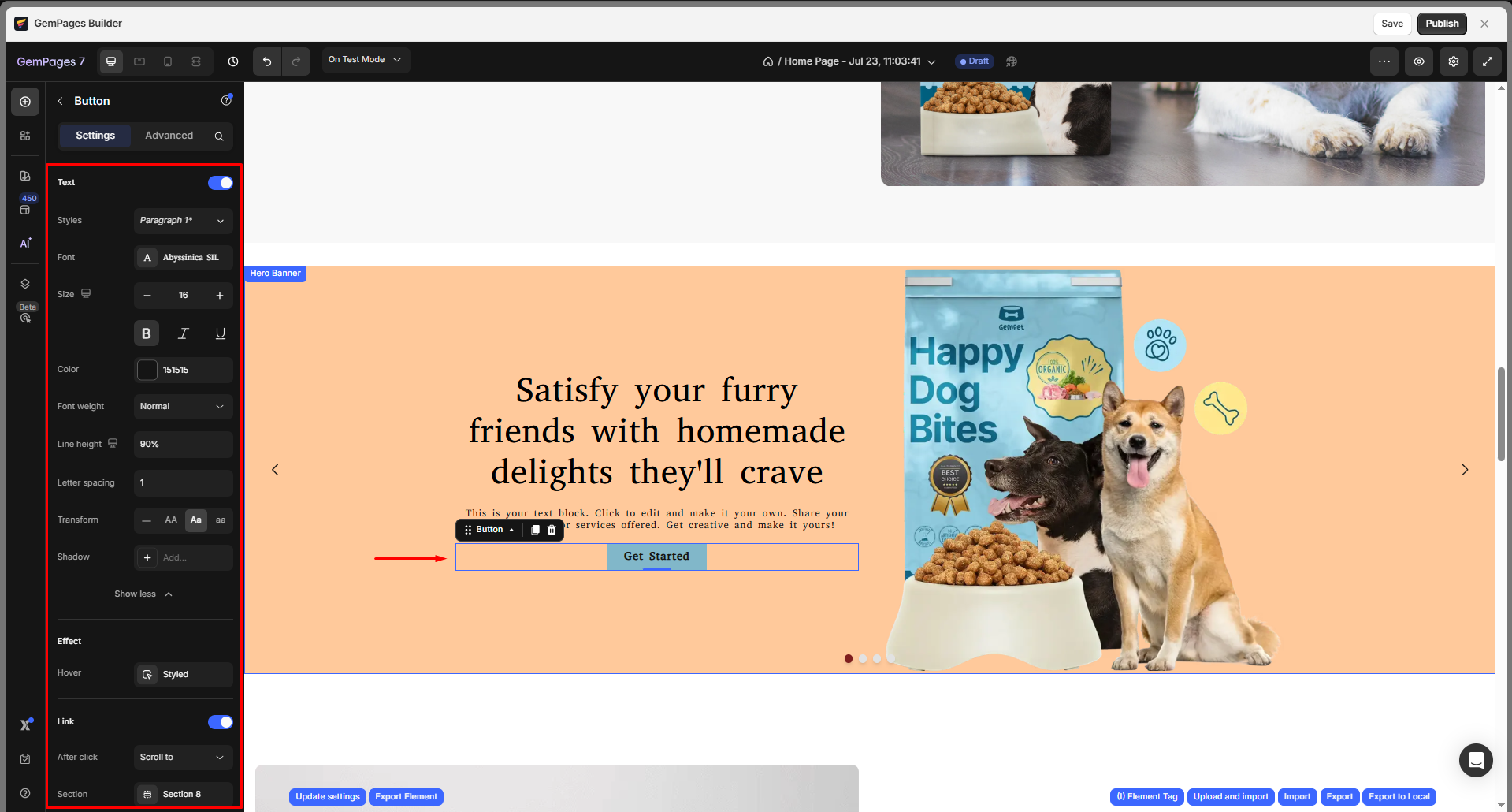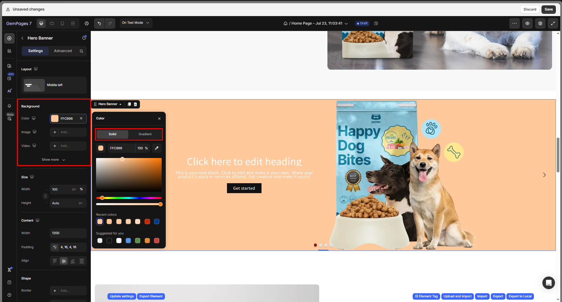 Now, let’s customize your hero banner in the Settings tab. From the left sidebar, you can modify the Hero Banner element your way.