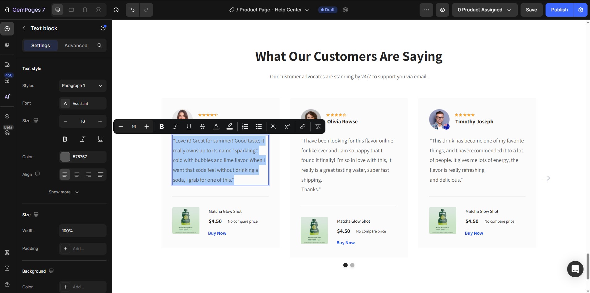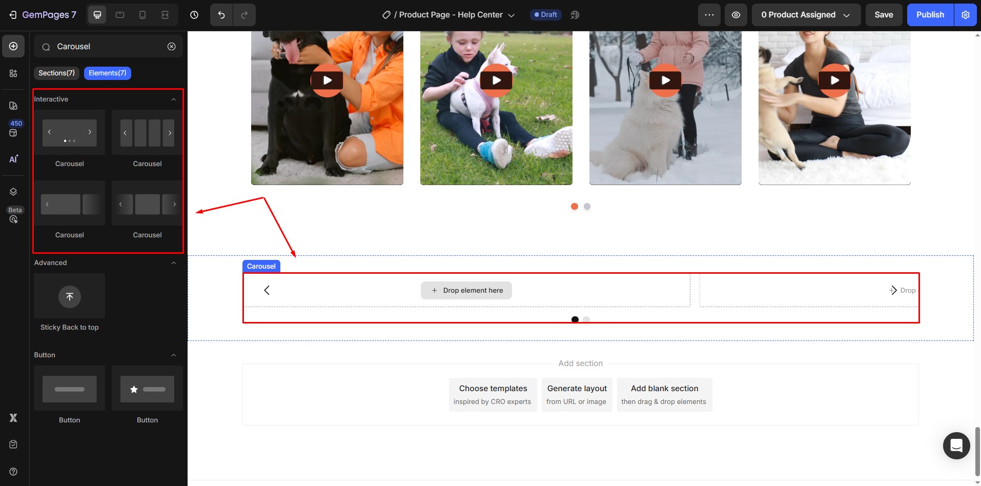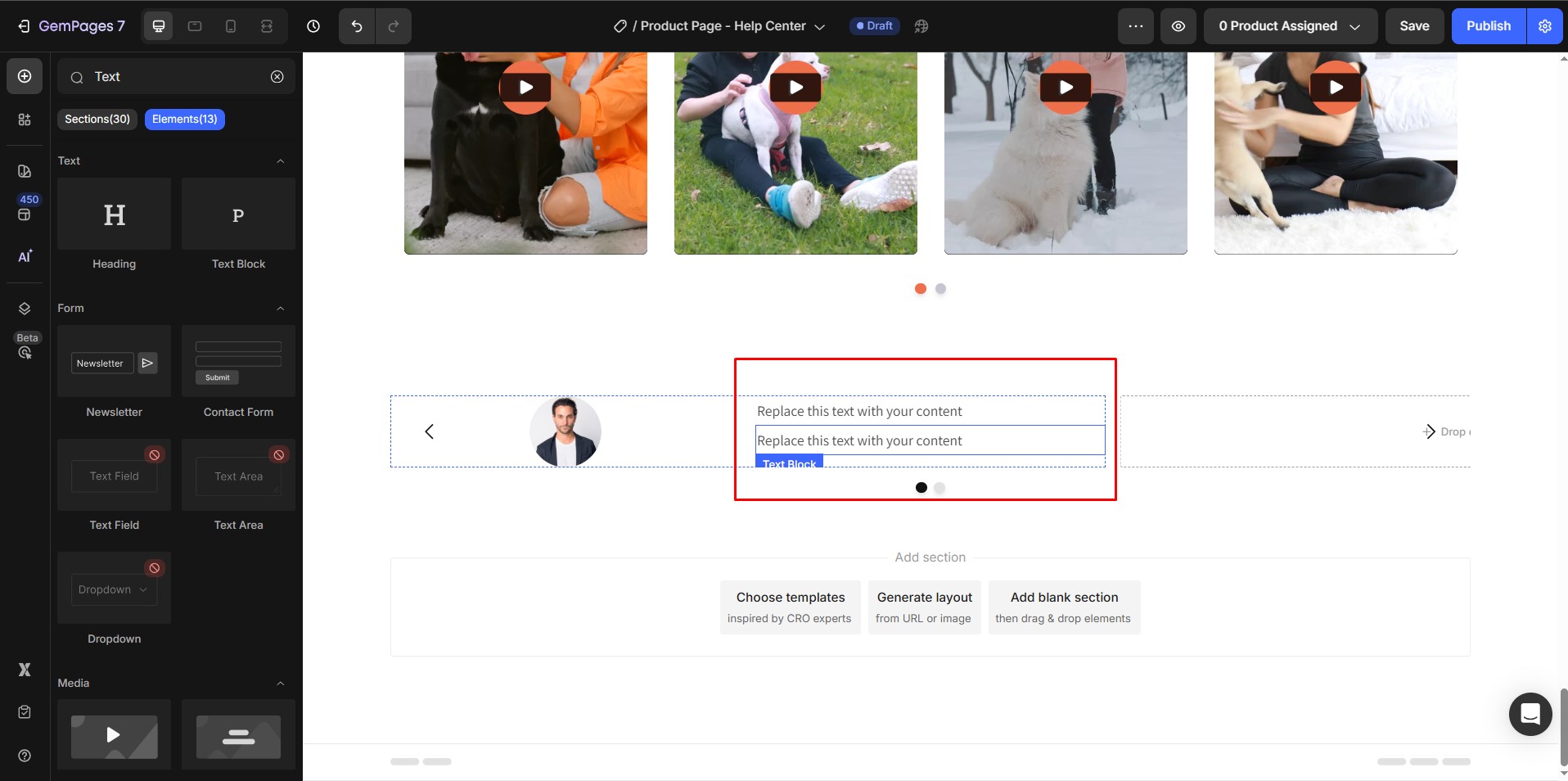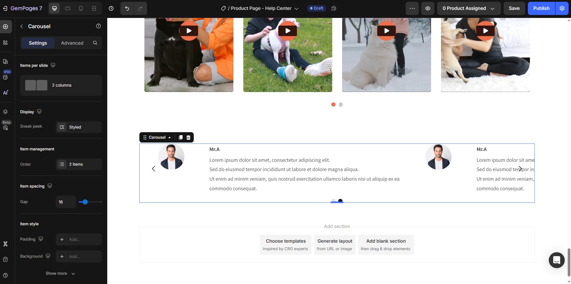 If you prefer a faster setup, GemPages offers ready-made testimonial carousel layouts in the Template Library.