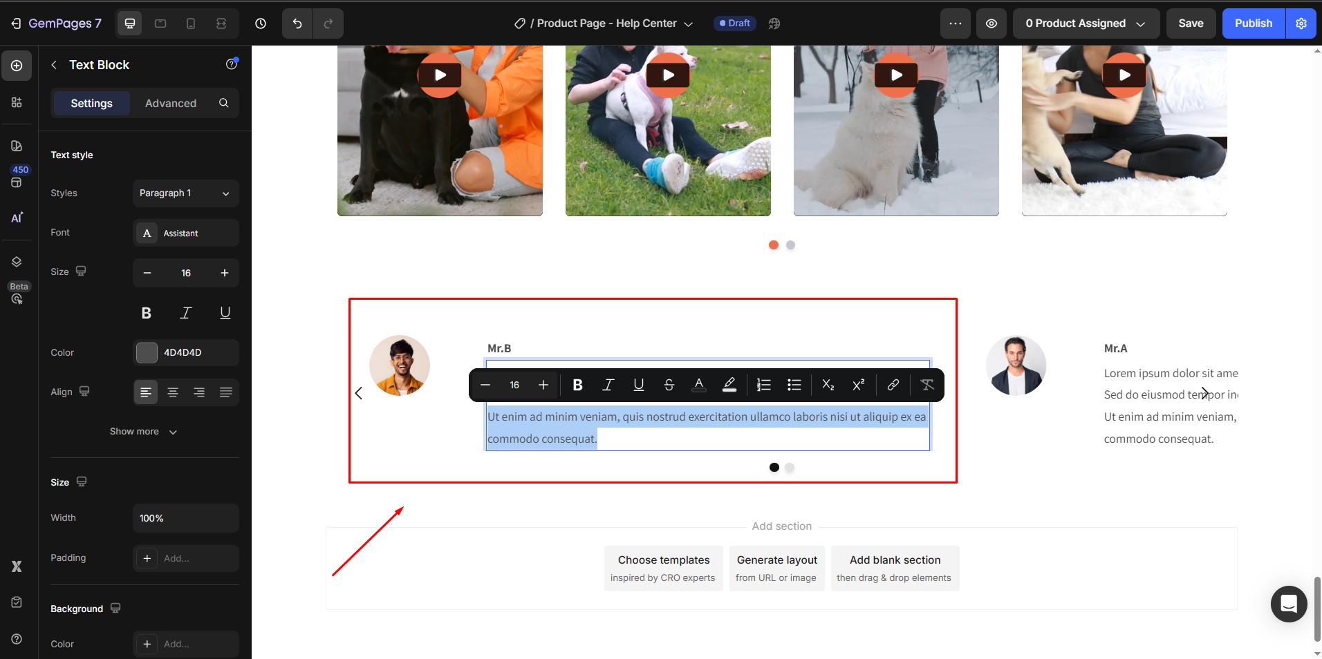 Follow these steps to create a testimonial carousel from scratch using GemPages: