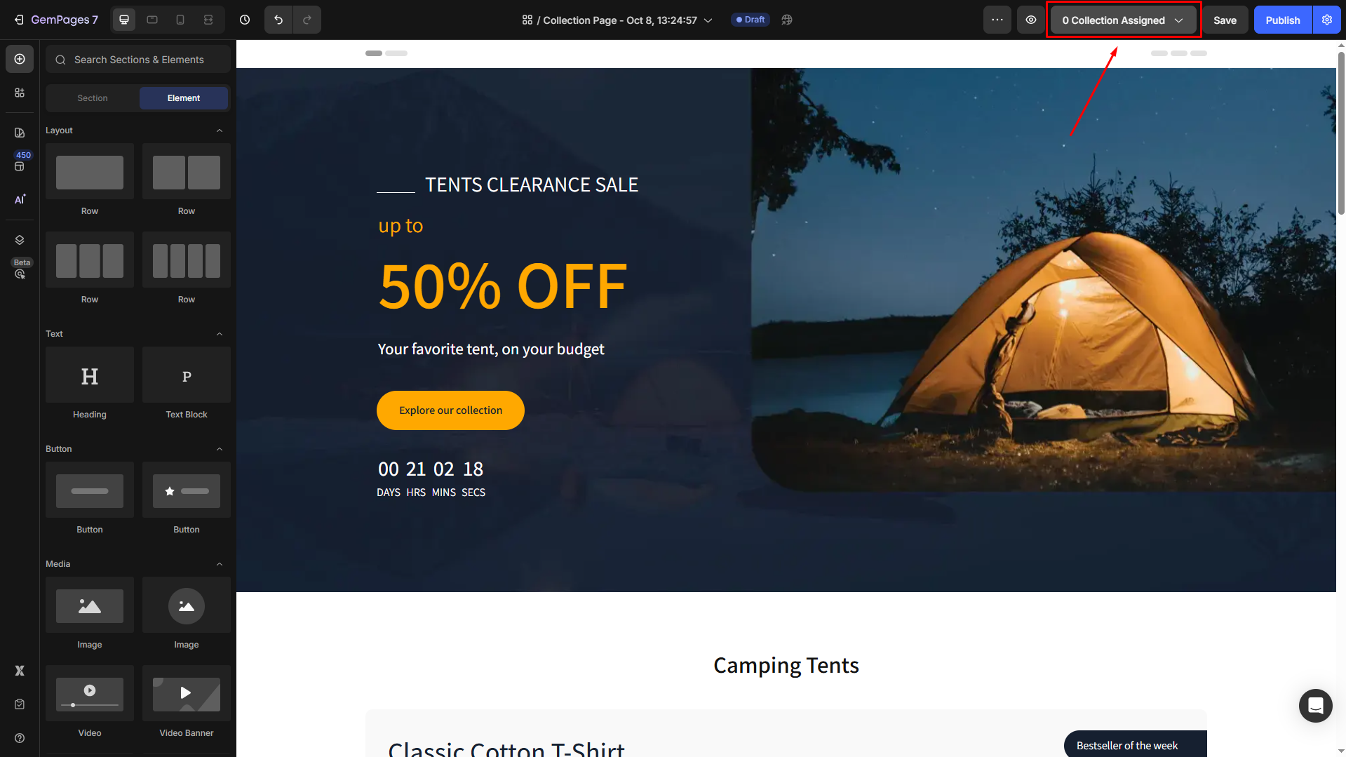 In the top bar, click on “0 Collection Assigned” to assign your collection to this collection page.