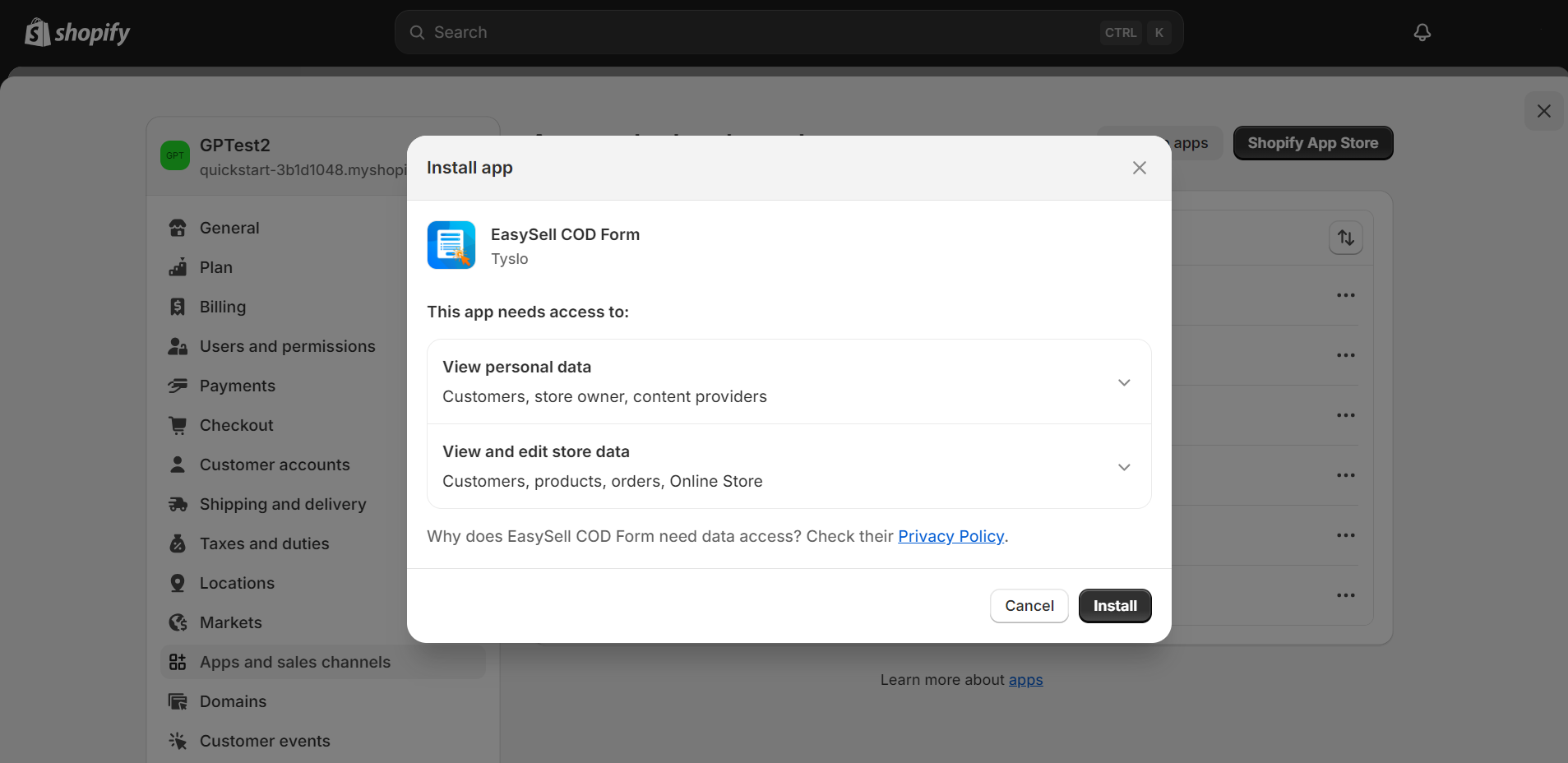 Step 1: Install EasySell COD Form & Upsell in the Shopify App Store.