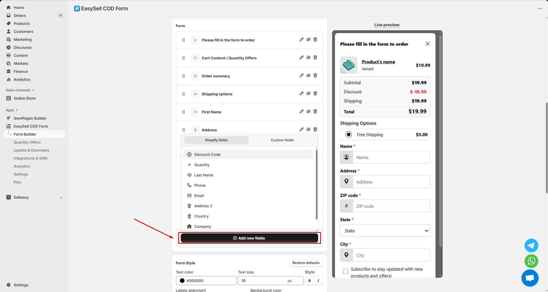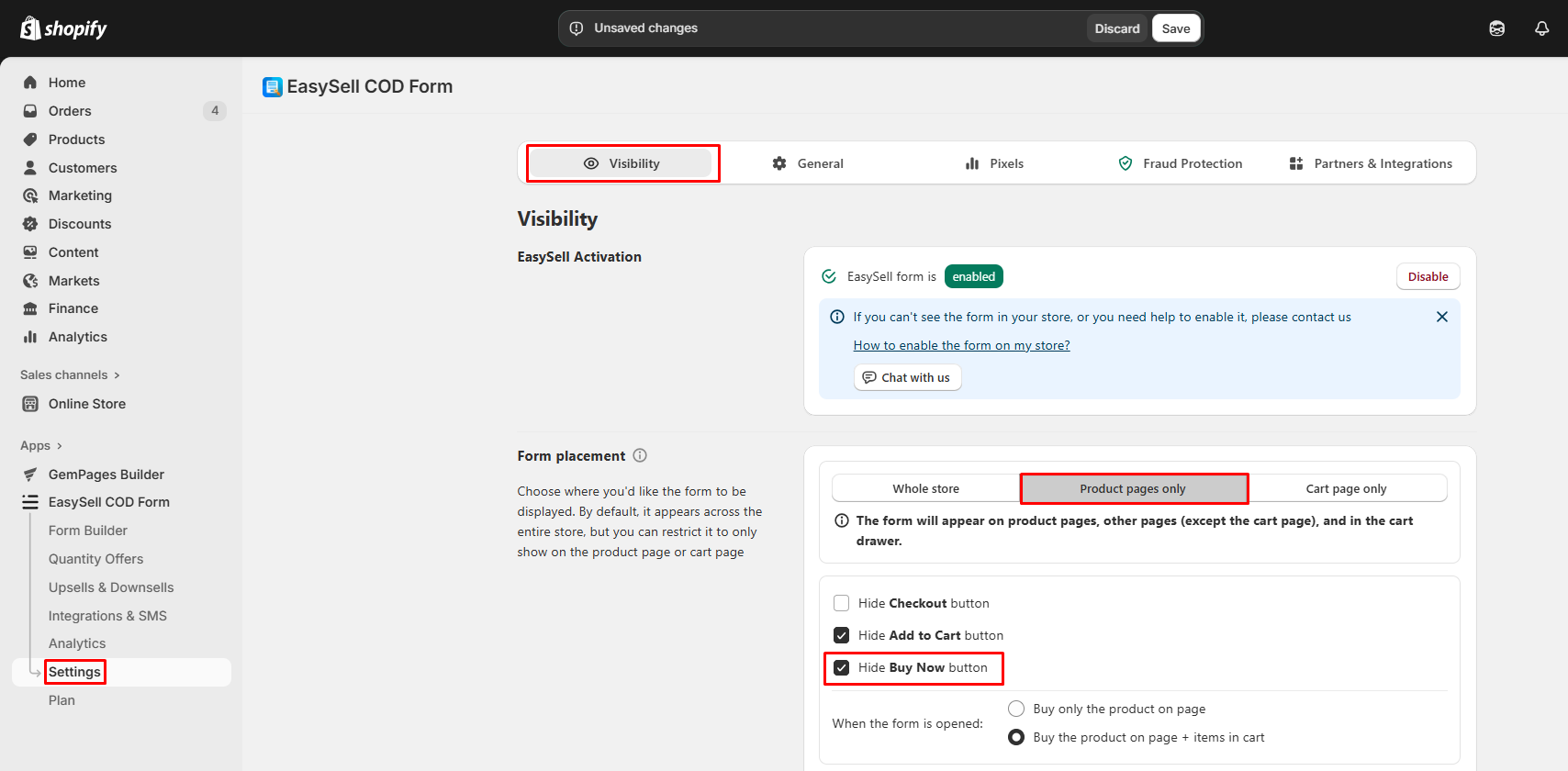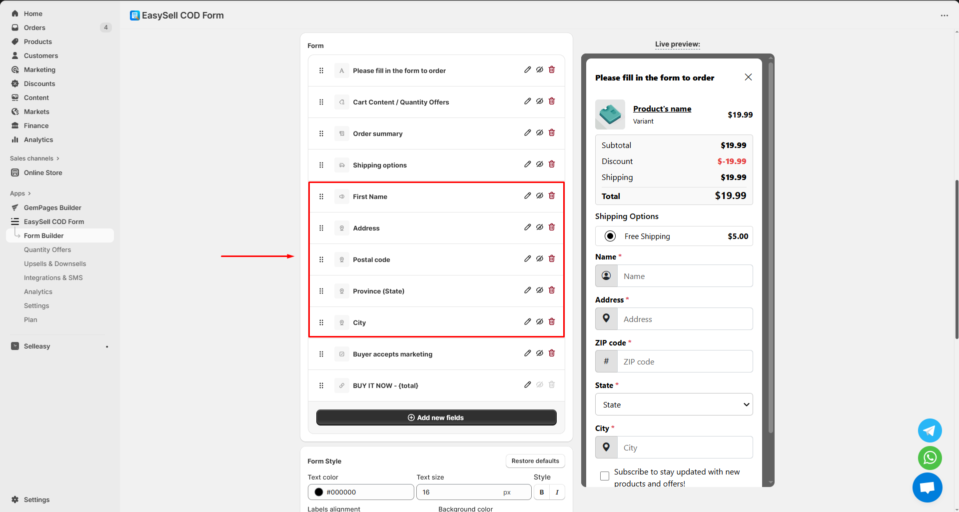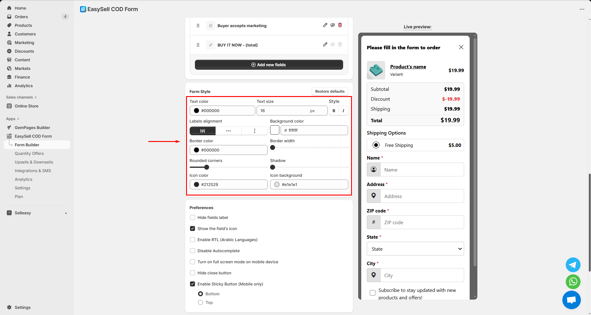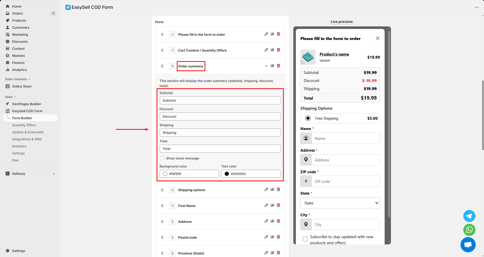- EasySell COD Form & Upsells does NOT work with the preview page of GemPages.