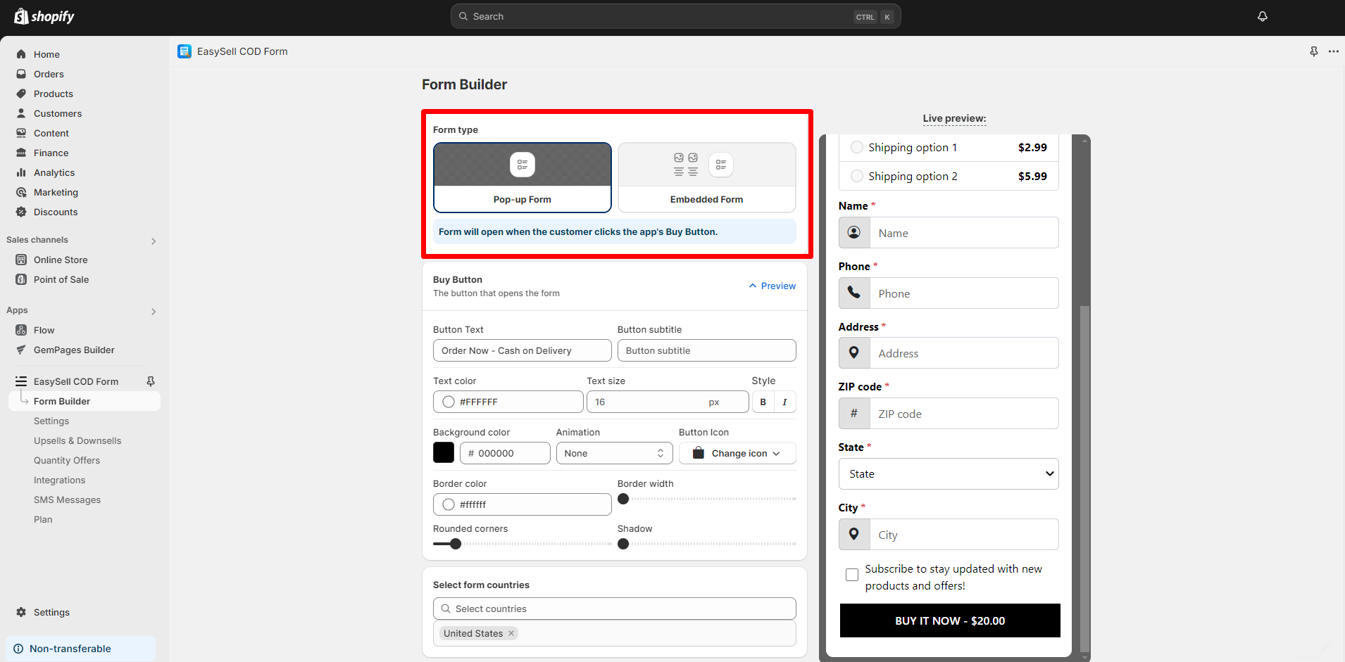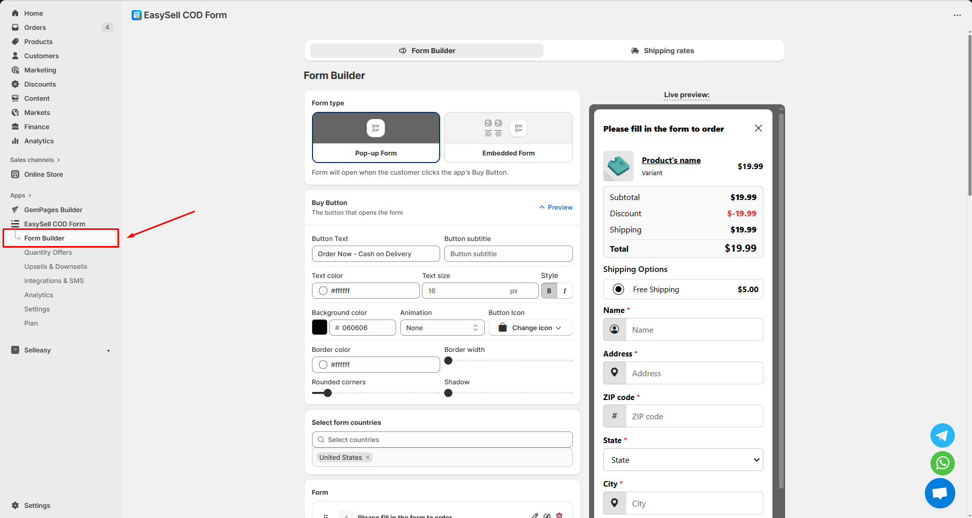To create the COD form for your store, go to Form Builder in the app’s settings dashboard.