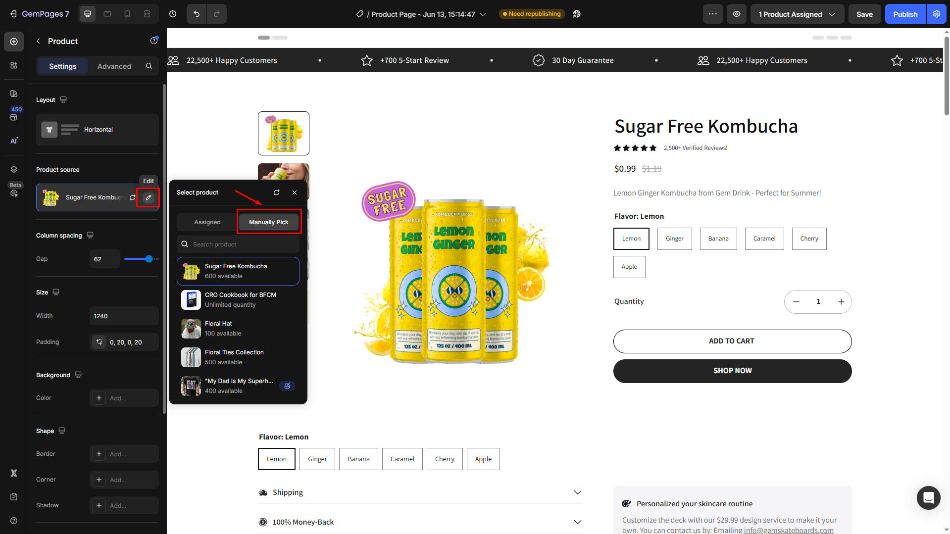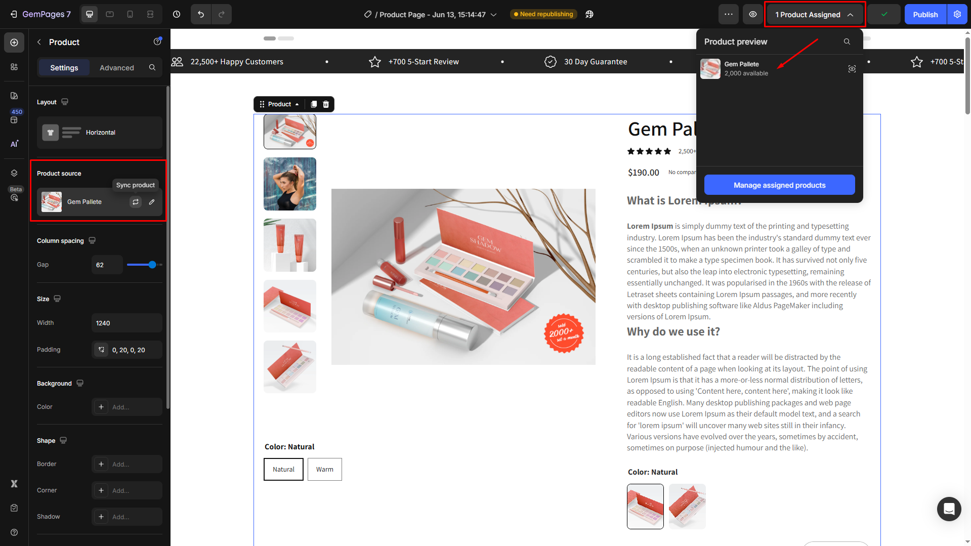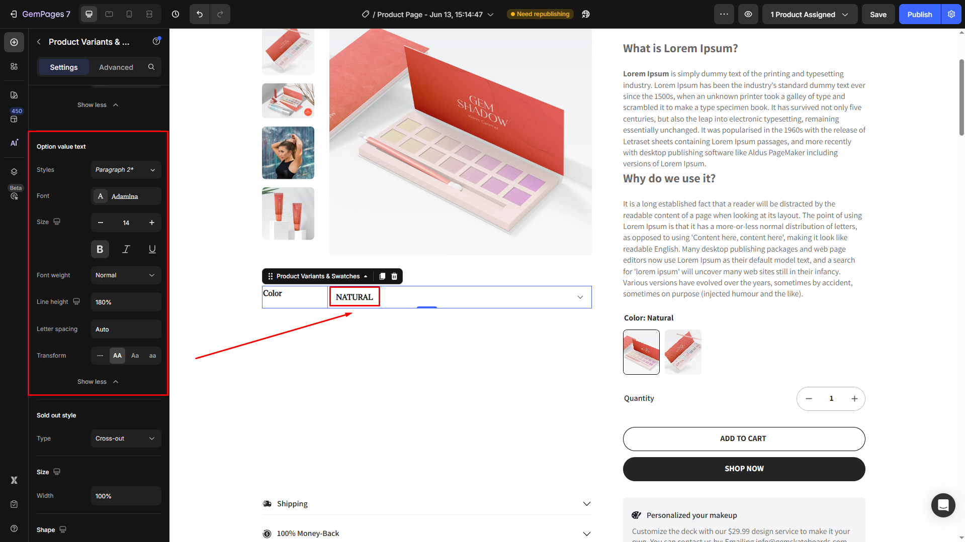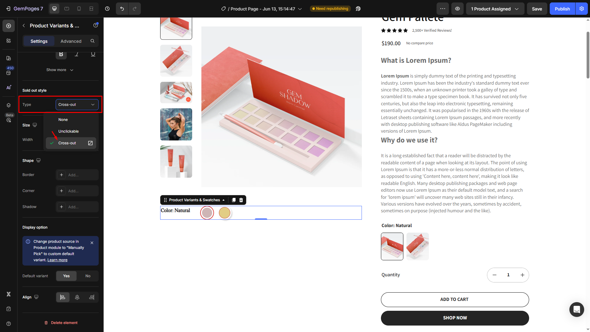 Follow these steps to add a Product Variant & Swatches to your page built with GemPages.