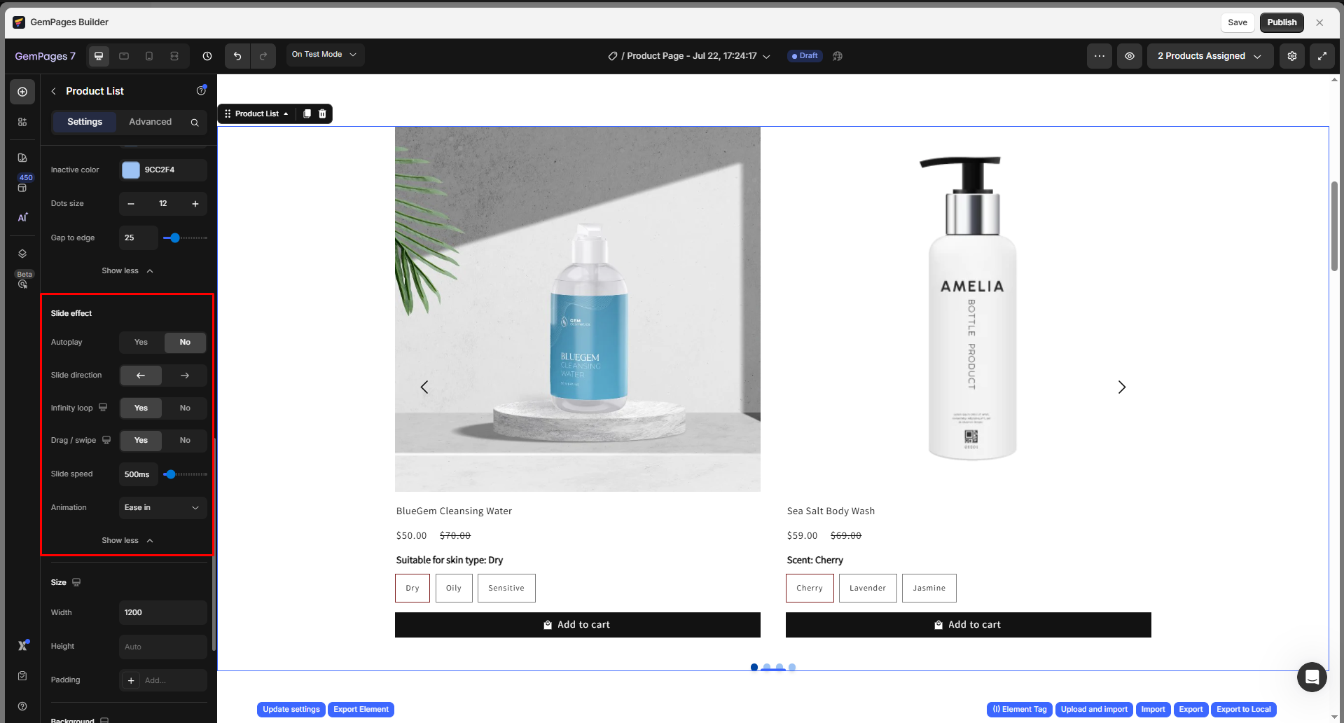 - Infinity loop: Enable continuous looping so the slider cycles back to the beginning after reaching the last product.