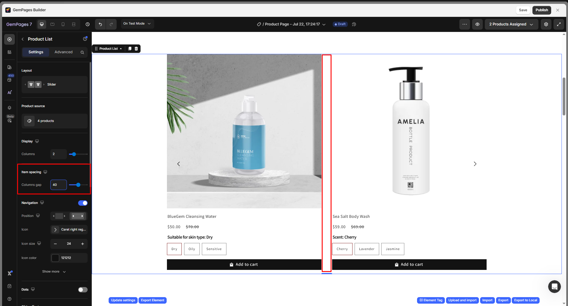 Adjust the spacing between your items in the Product List.