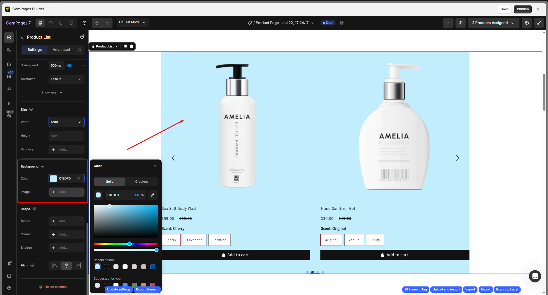 This section allows you to customize the background style of the Product List element: