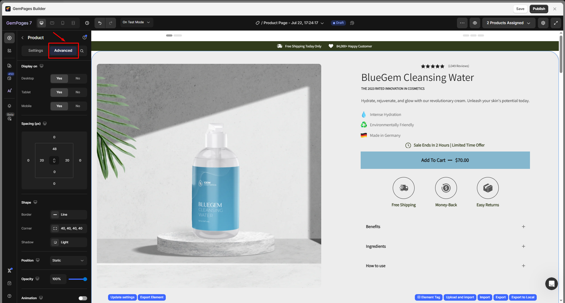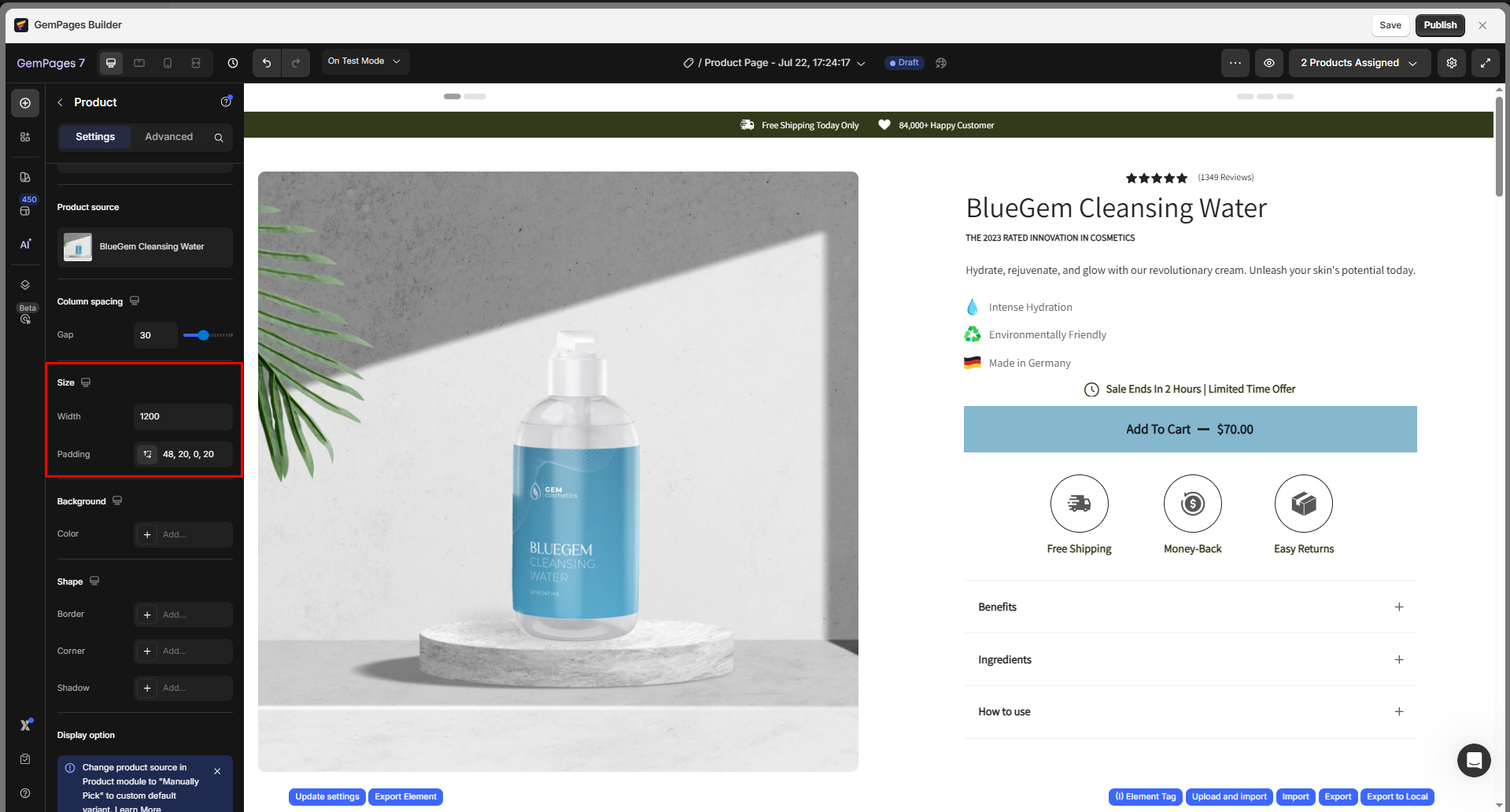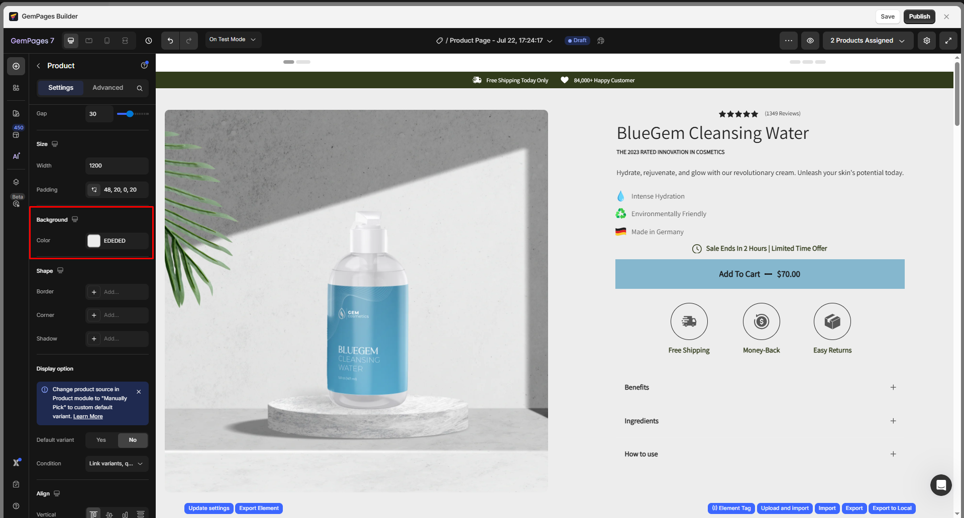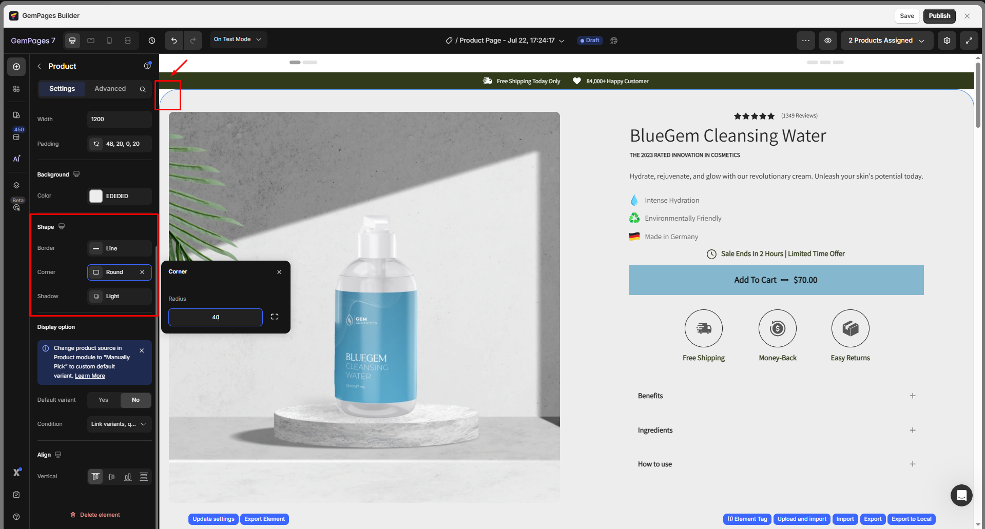 The Product Element is an essential element, enabling you to add any products from Shopify to GemPages. With the introduction of Editor v7, there are notable changes compared to the previous version.