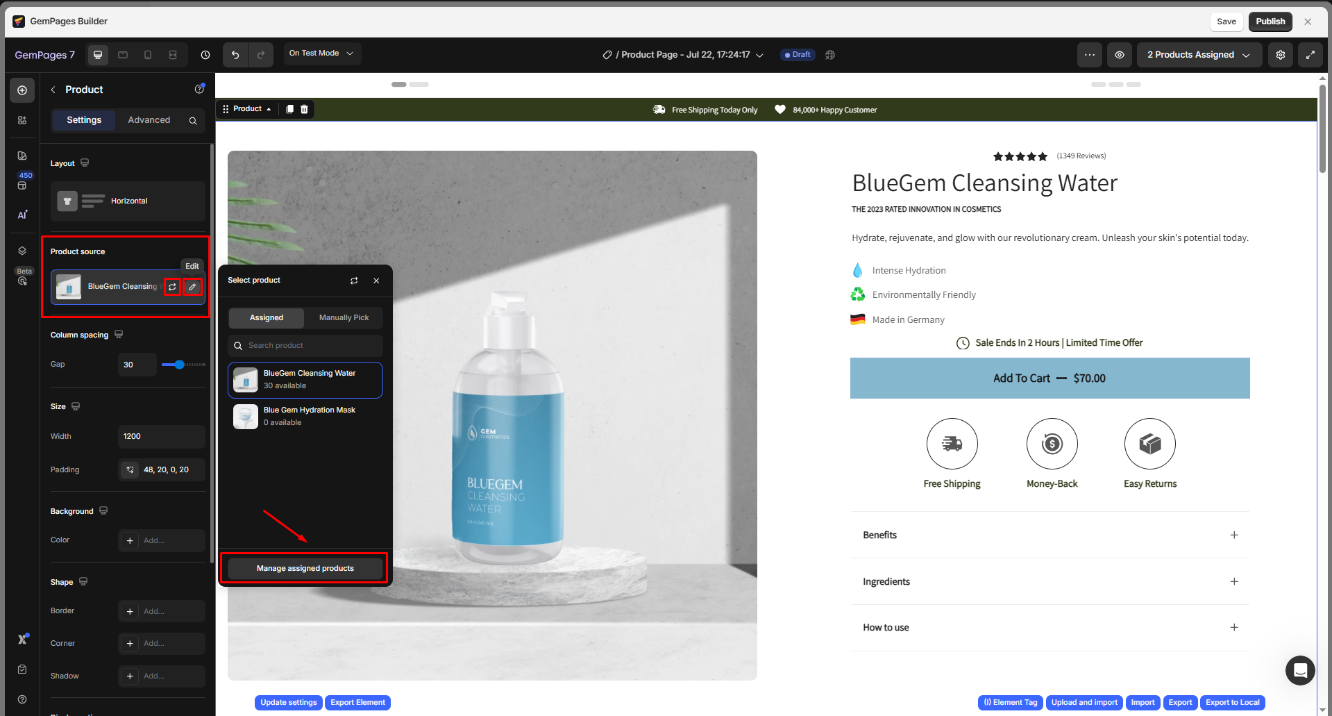 Note: You need to assign a product to the template to make sure it’s applied to your live page.
