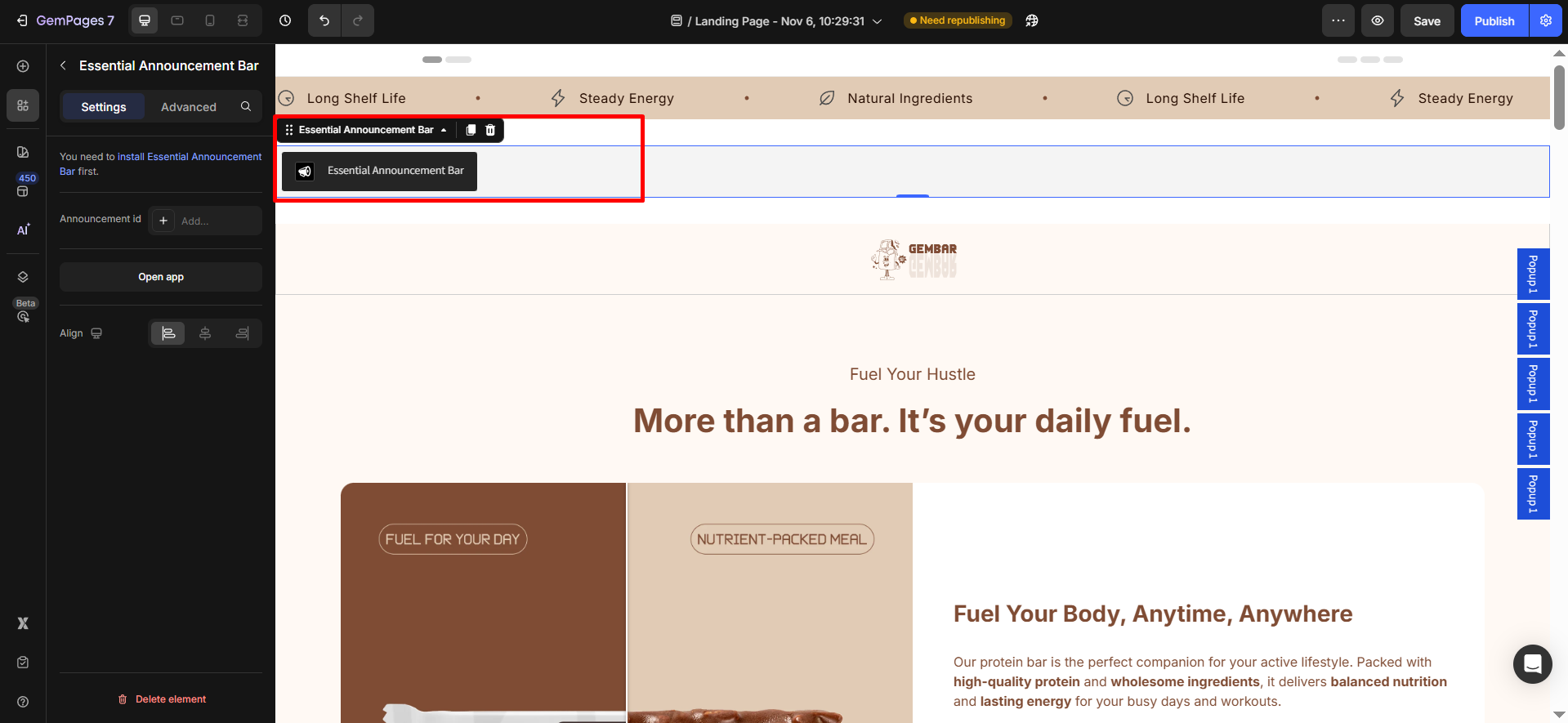 How to Add the Essential Announcement Bar App Element to GemPages v7?