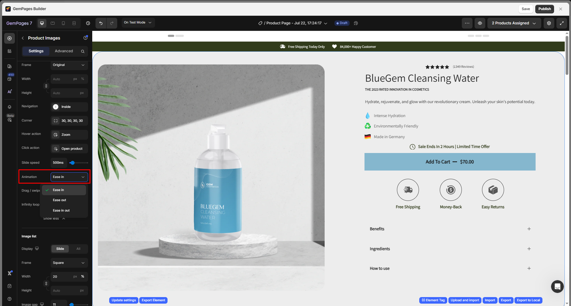 | Animation | Choose transition effect: Ease in, Ease out, Ease in & out.