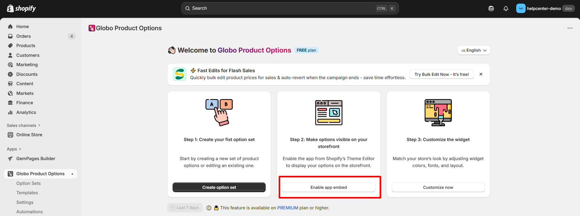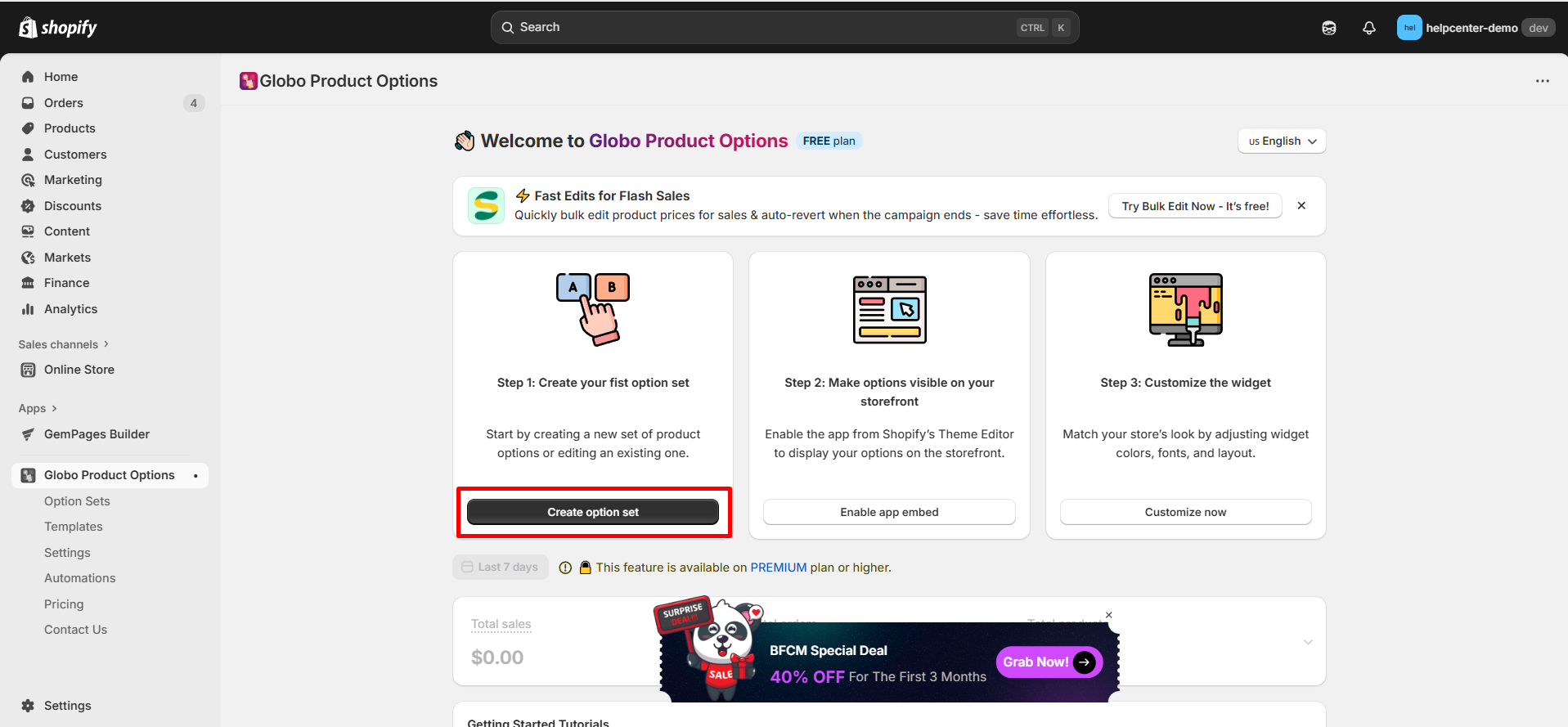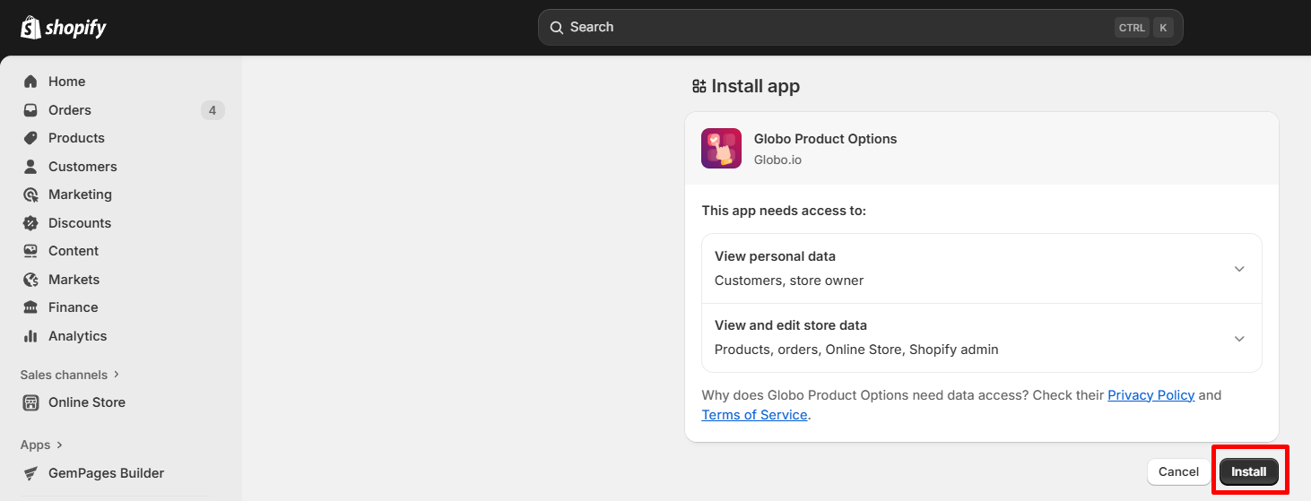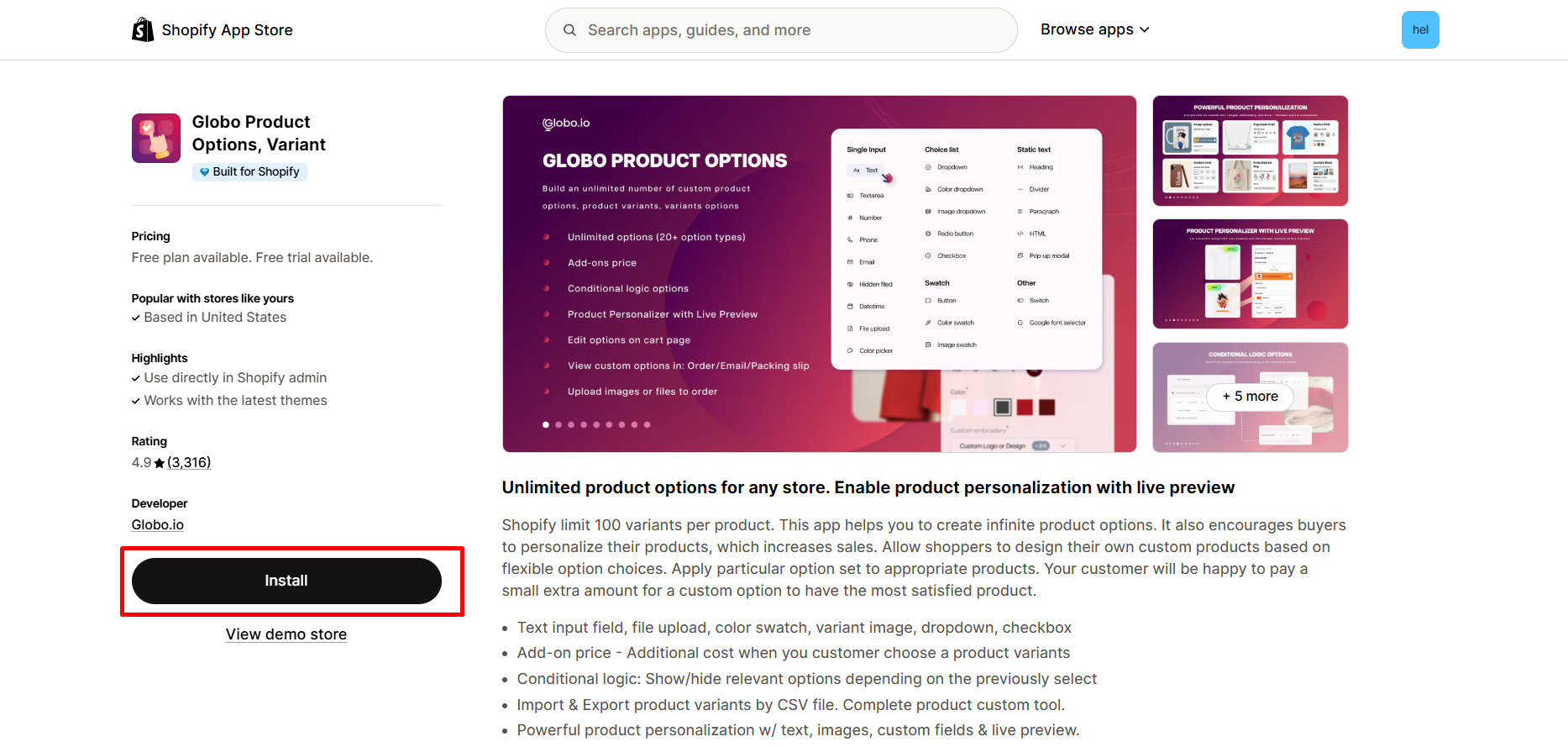 Step 1: Install Globo Product Options, Variant in the Shopify App Store.