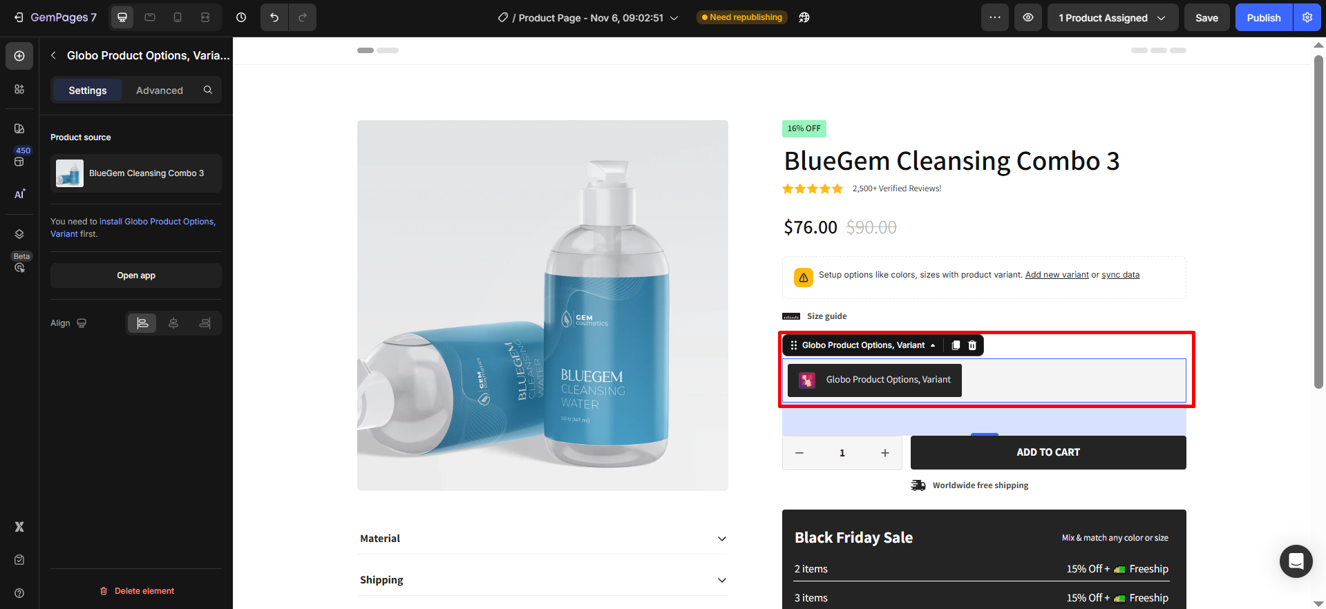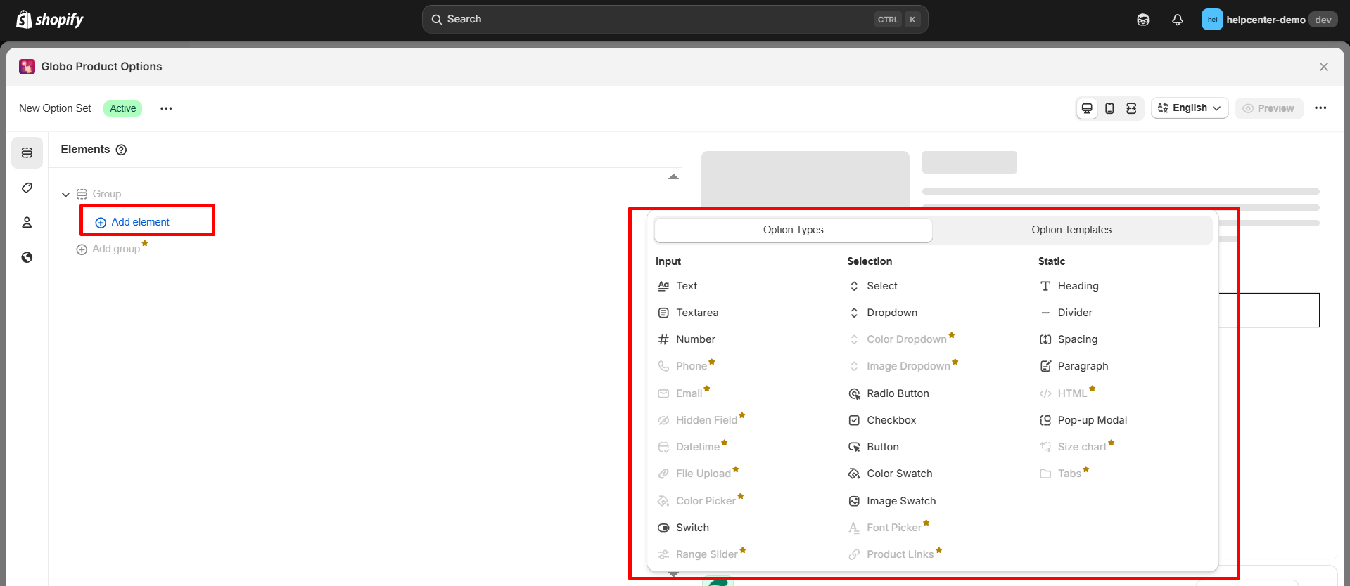 How to Add the Globo Product Options, Variant App Element to GemPages v7?