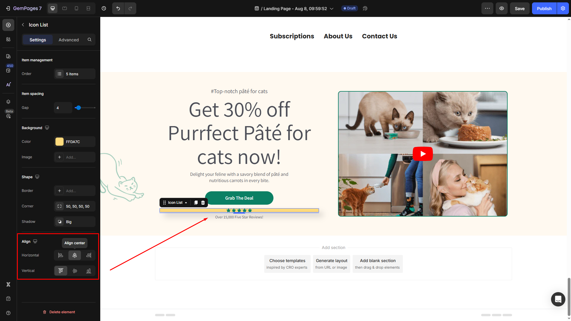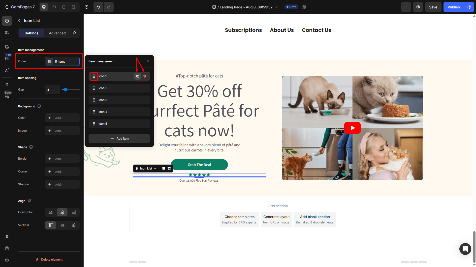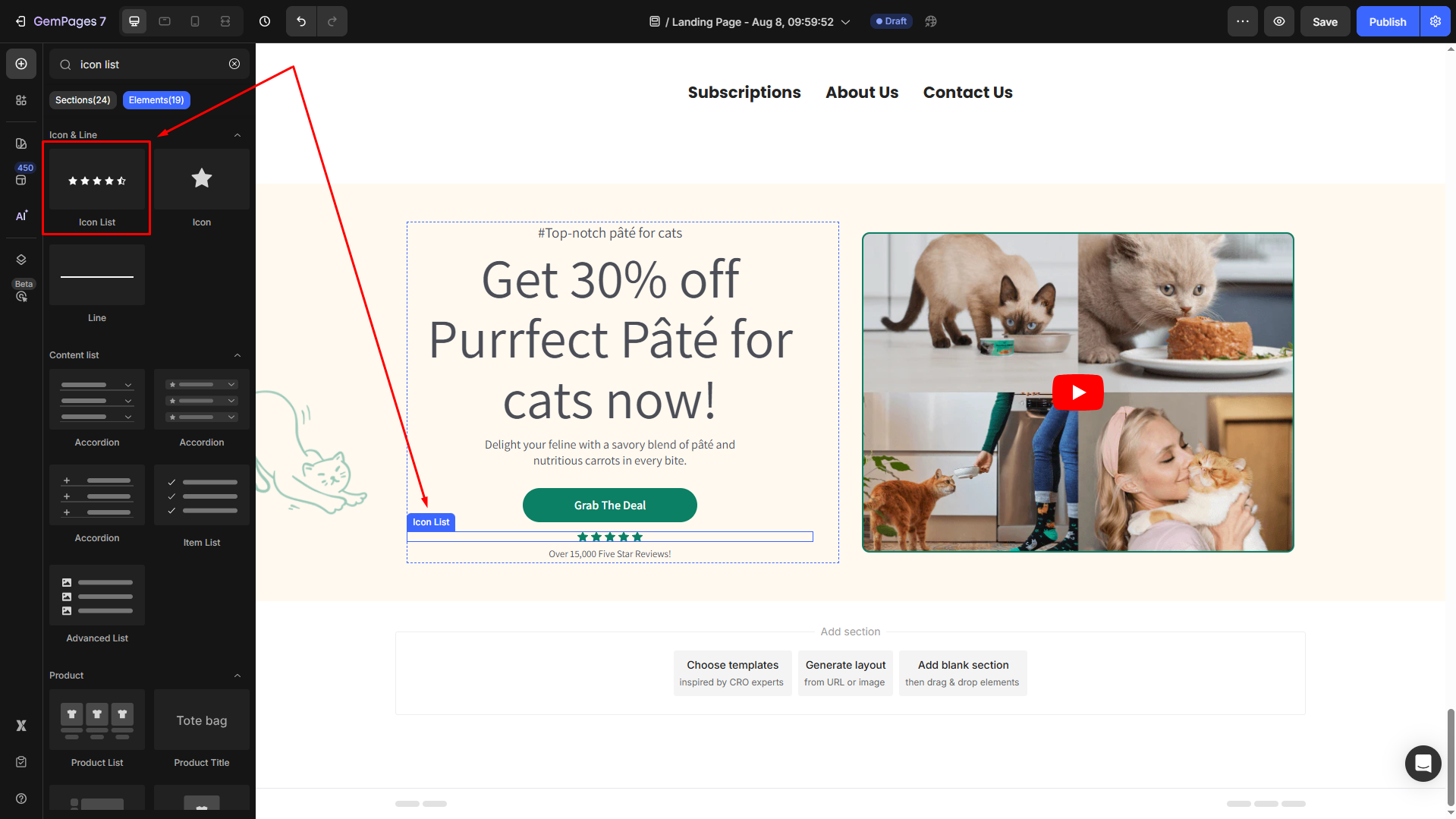 Follow these steps below to drag and drop an Icon List Element into your page using GemPages Editor v7: