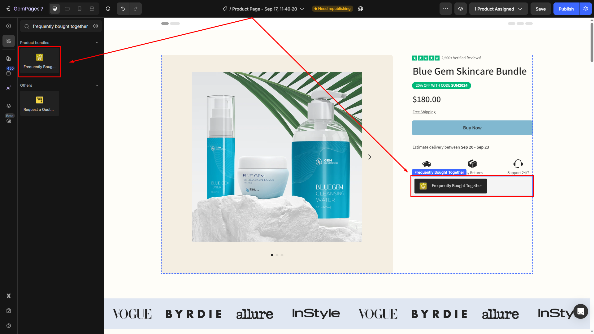 This article will walk you through how to integrate the Frequently Bought Together with GemPages.