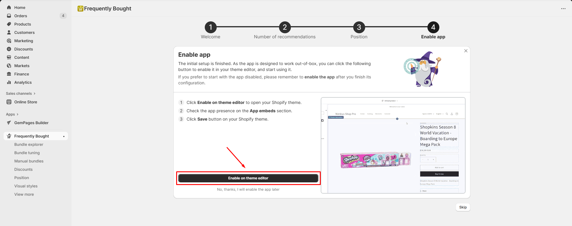Step 4: Enable the app in your theme editor.