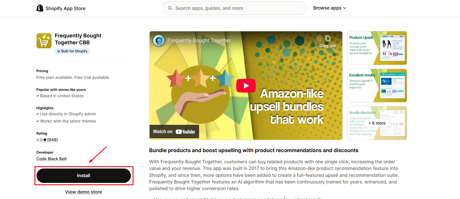Step 1: Go to the Shopify App Store and click Install to add the Frequently Bought Together app to your store.