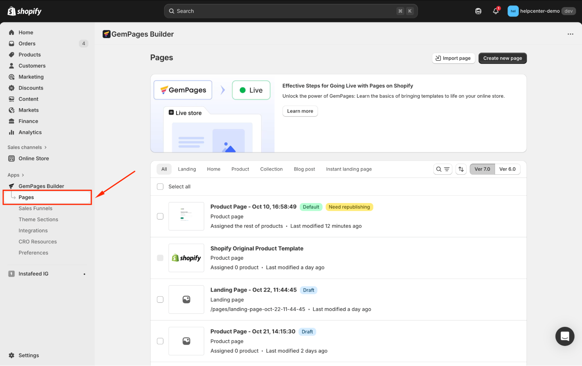 Step 1: From the GemPages Dashboard, go to Pages and click on the target page to open it in the editor.
