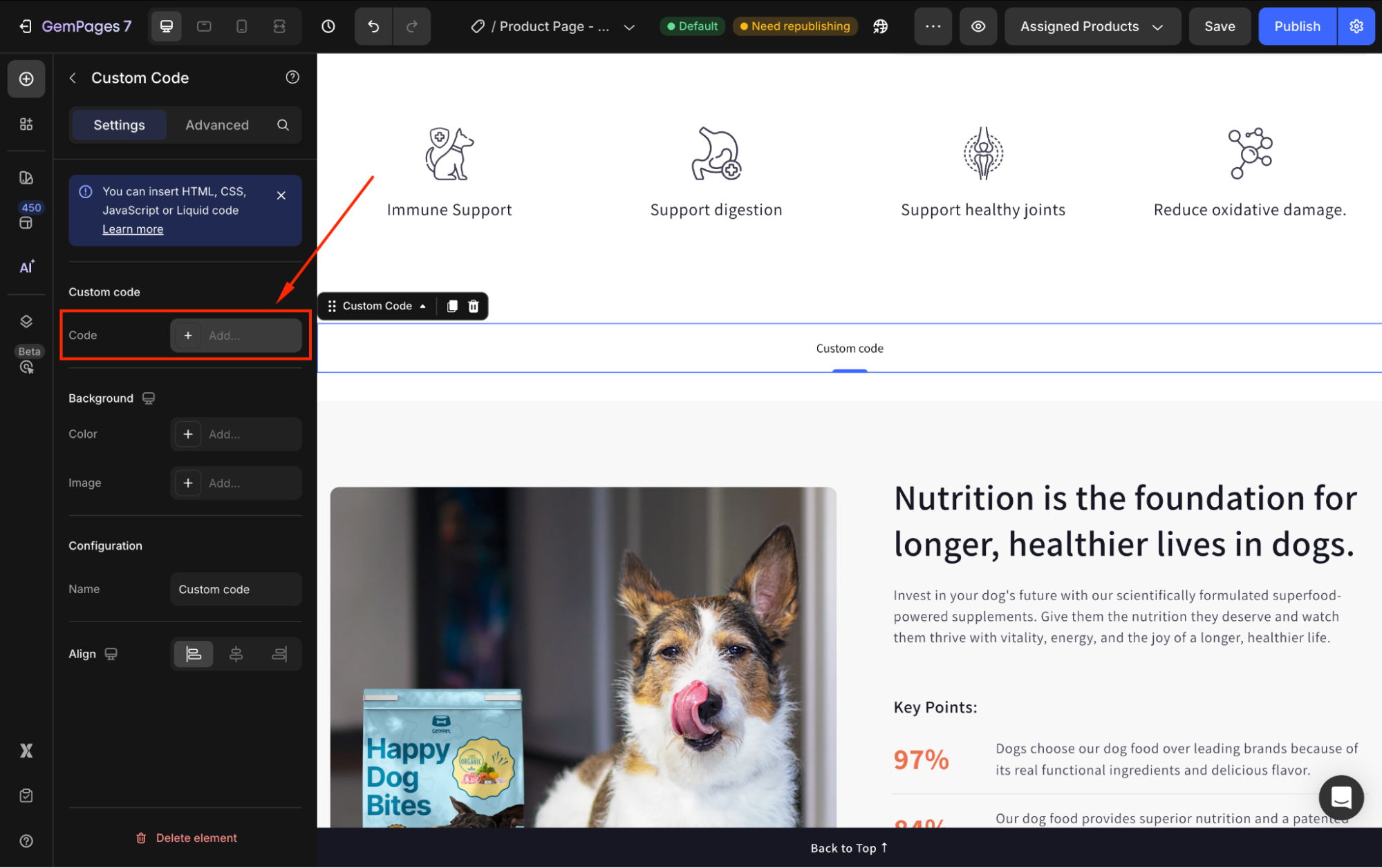 However, if your page uses a custom domain, subdomain, or independent publishing setup, you should manually add the code using GemPages’ Custom Code Element to ensure accurate tracking.