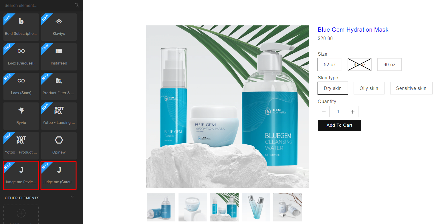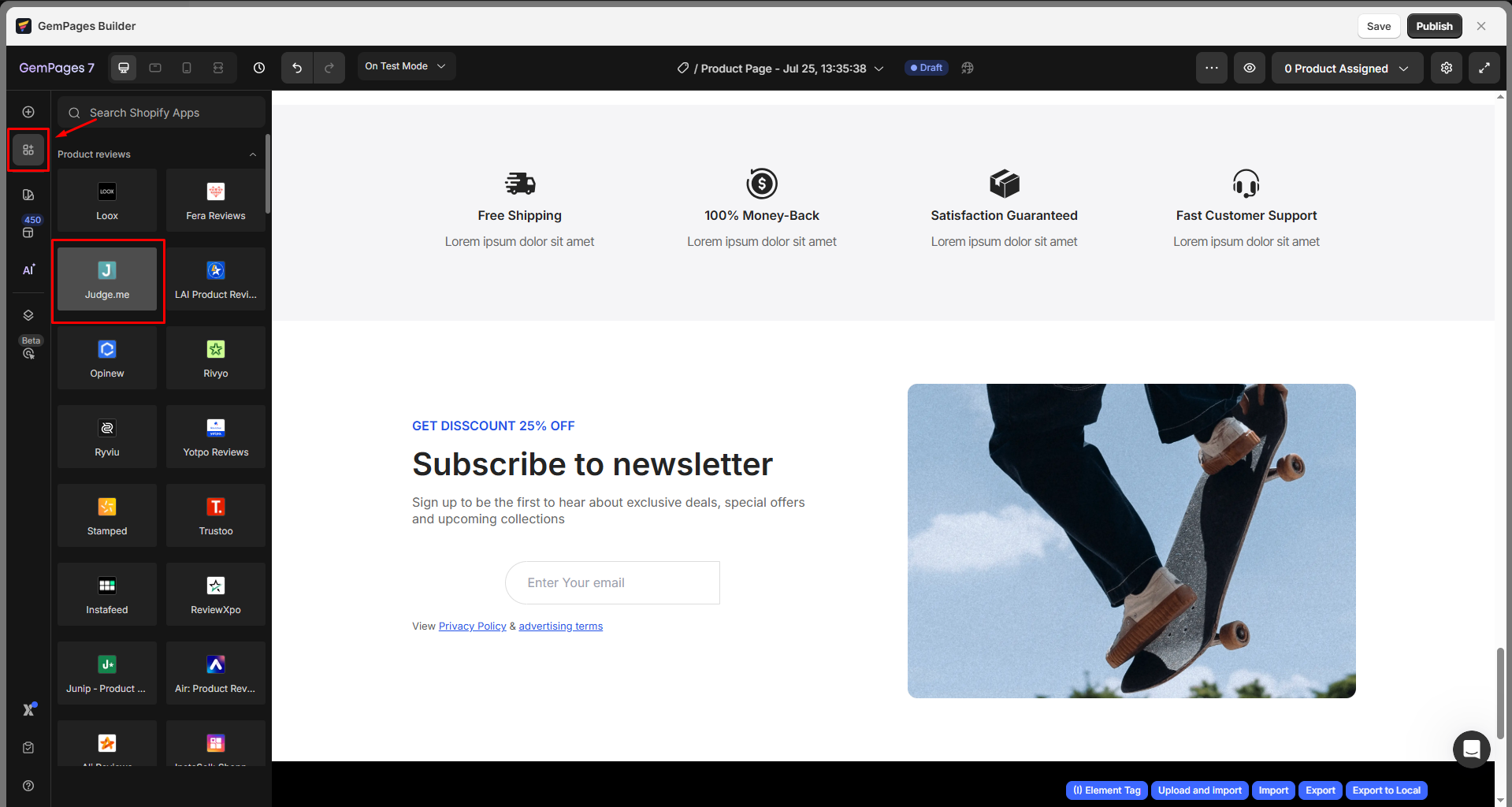 Within GemPages v7, it’s easier than ever to display the Judge.me Reviews widget on your product page to increase trust. Follow these steps: