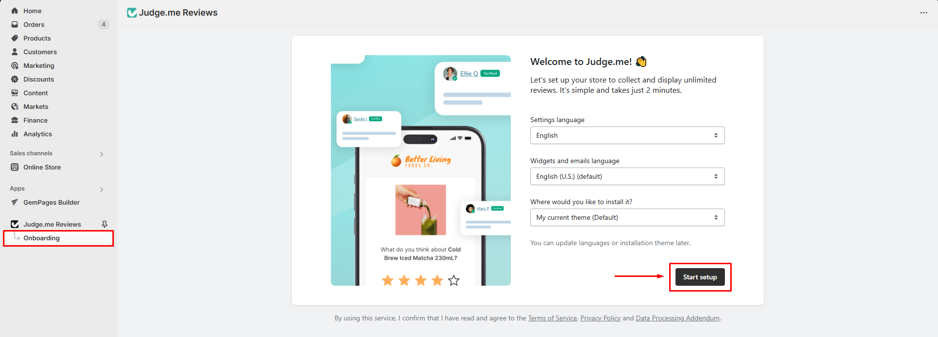 Once done with the onboarding, you’ll be redirected to the Judge.me Dashboard.