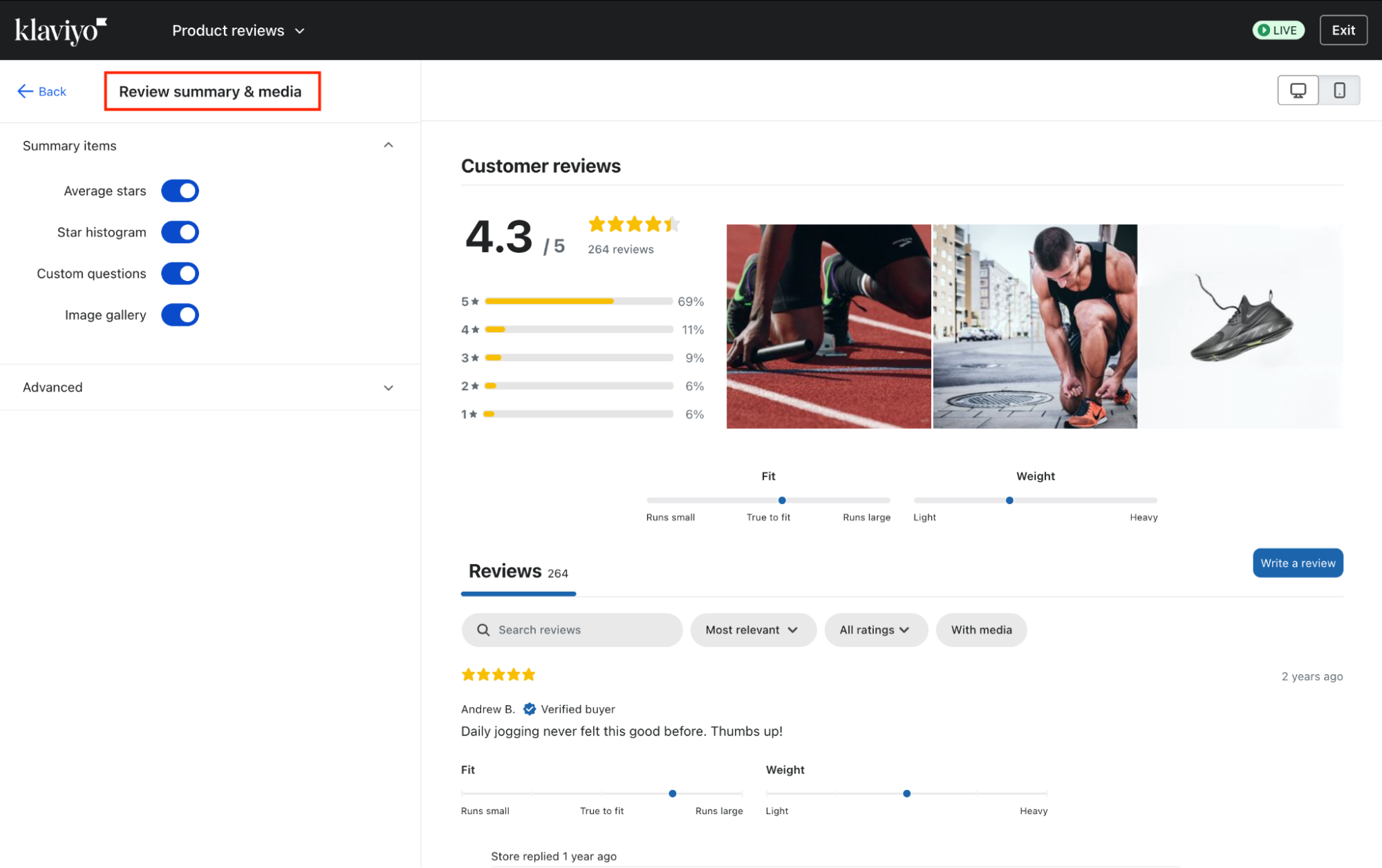 - You’ve configured review widgets and onsite settings inside Klaviyo.