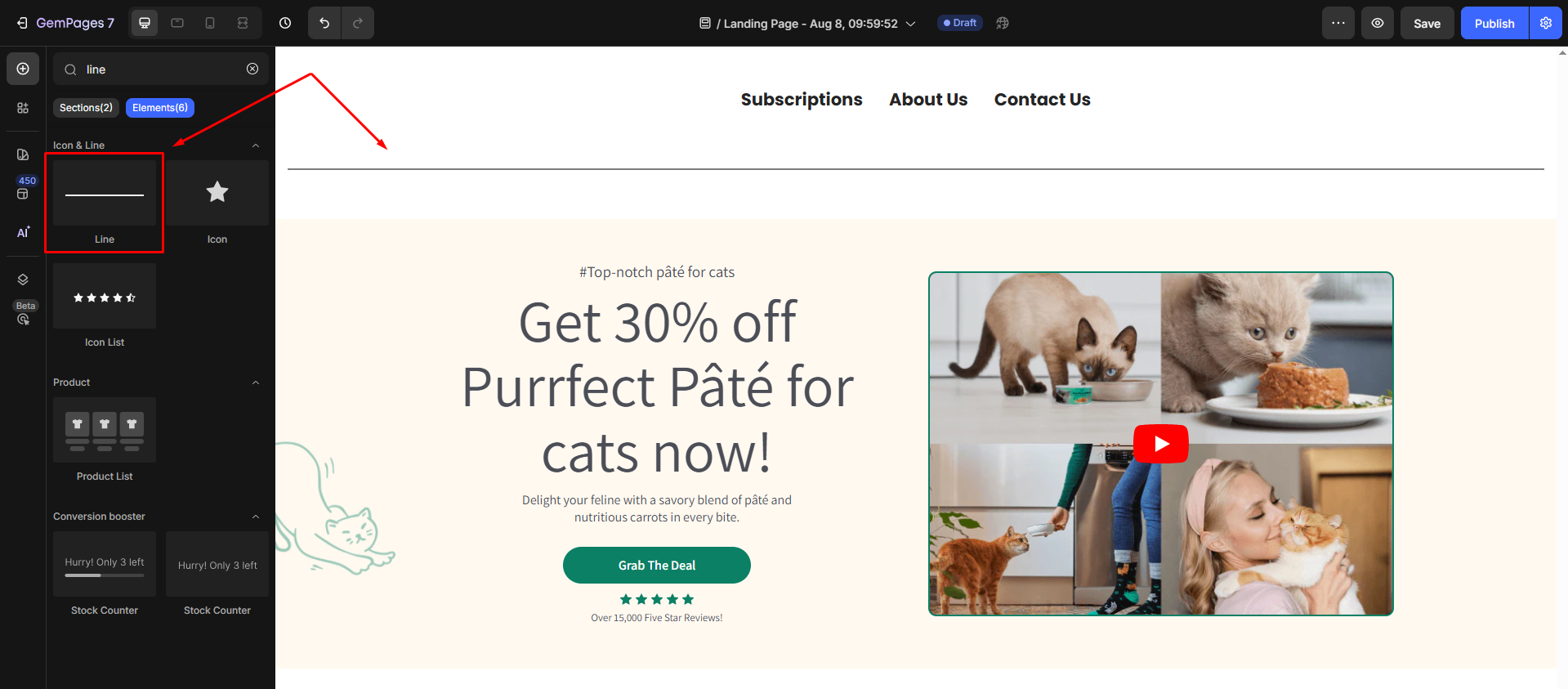 Follow these steps below to drag and drop a Line (Divider) Element into your page using GemPages Editor v7: