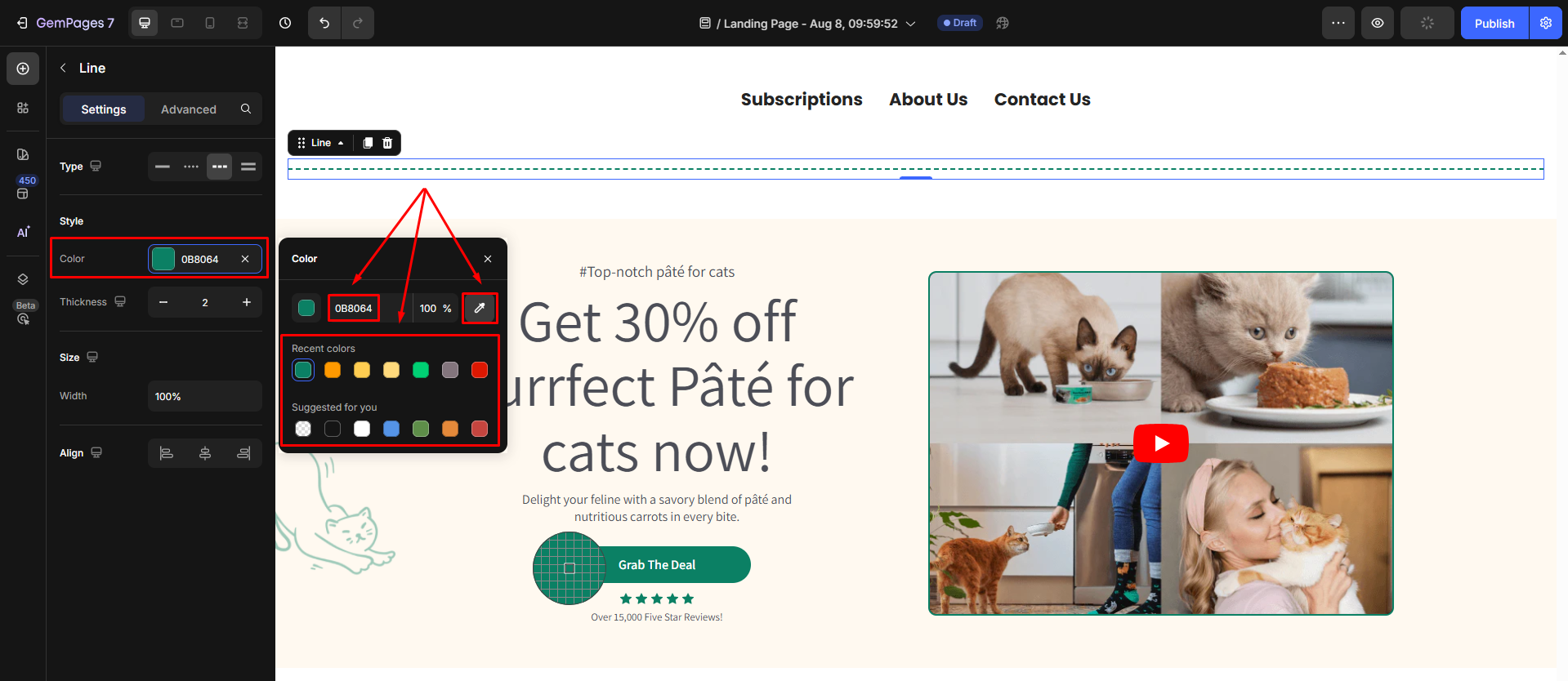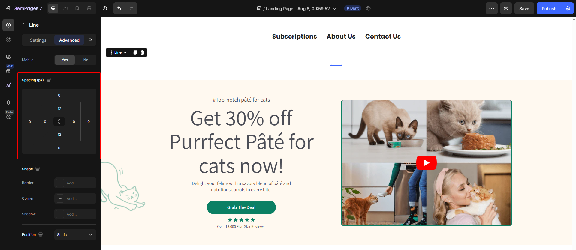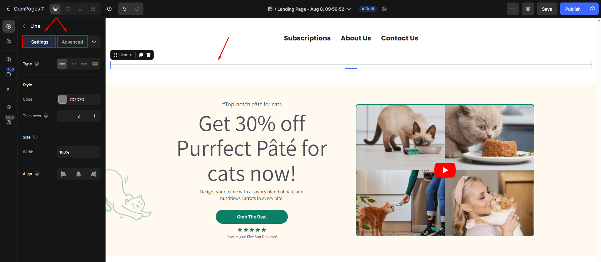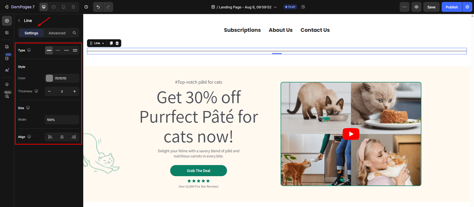 To customize the spacing above and below the Line element in GemPages, you can easily adjust its margins. Follow these simple steps:
