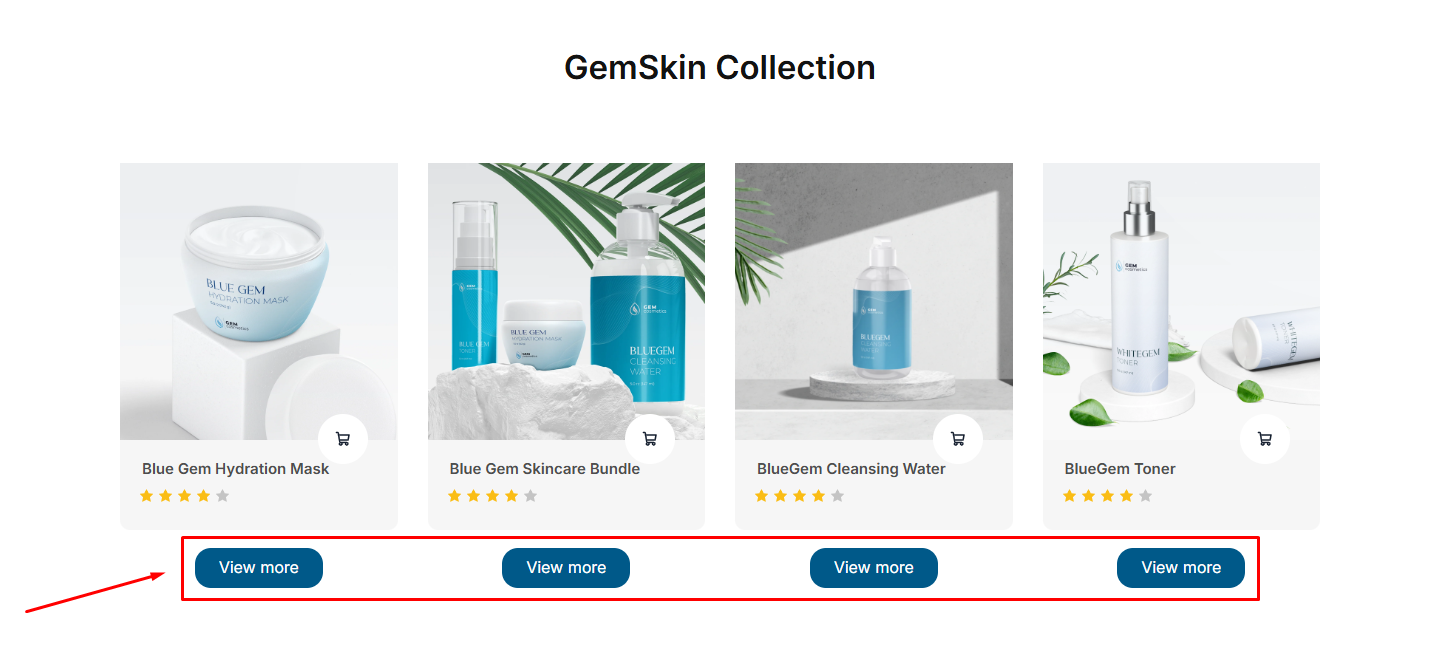 - Keep it consistent: Use the same “View More” button style (color, size, font) across all product sections to create a cohesive store design.