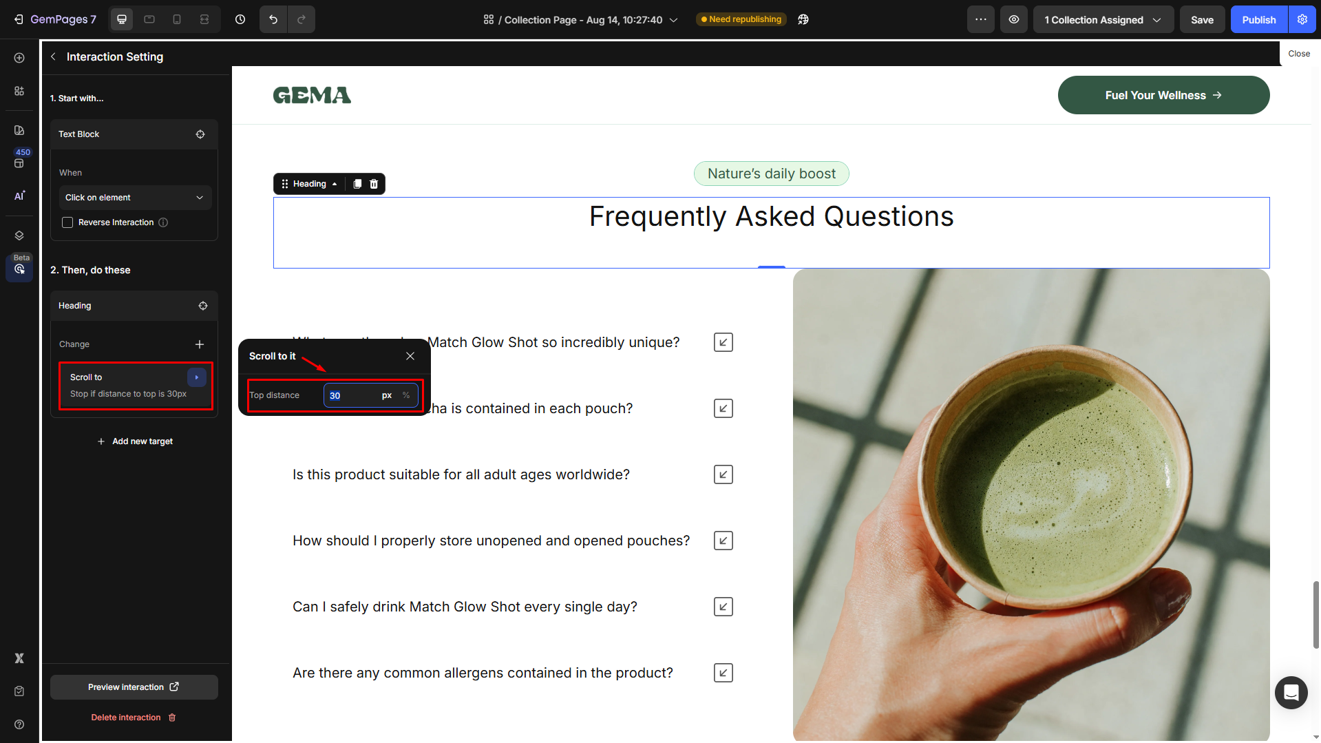 Then, adjust Scroll Top distance: Input a value in pixels (px) to control where the page stops when scrolling to the target section.