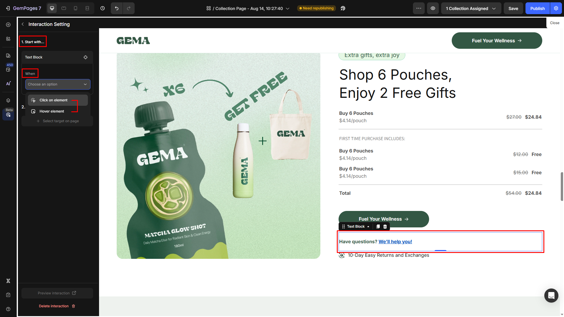 How to Make a Text or Image Clickable in GemPages?
