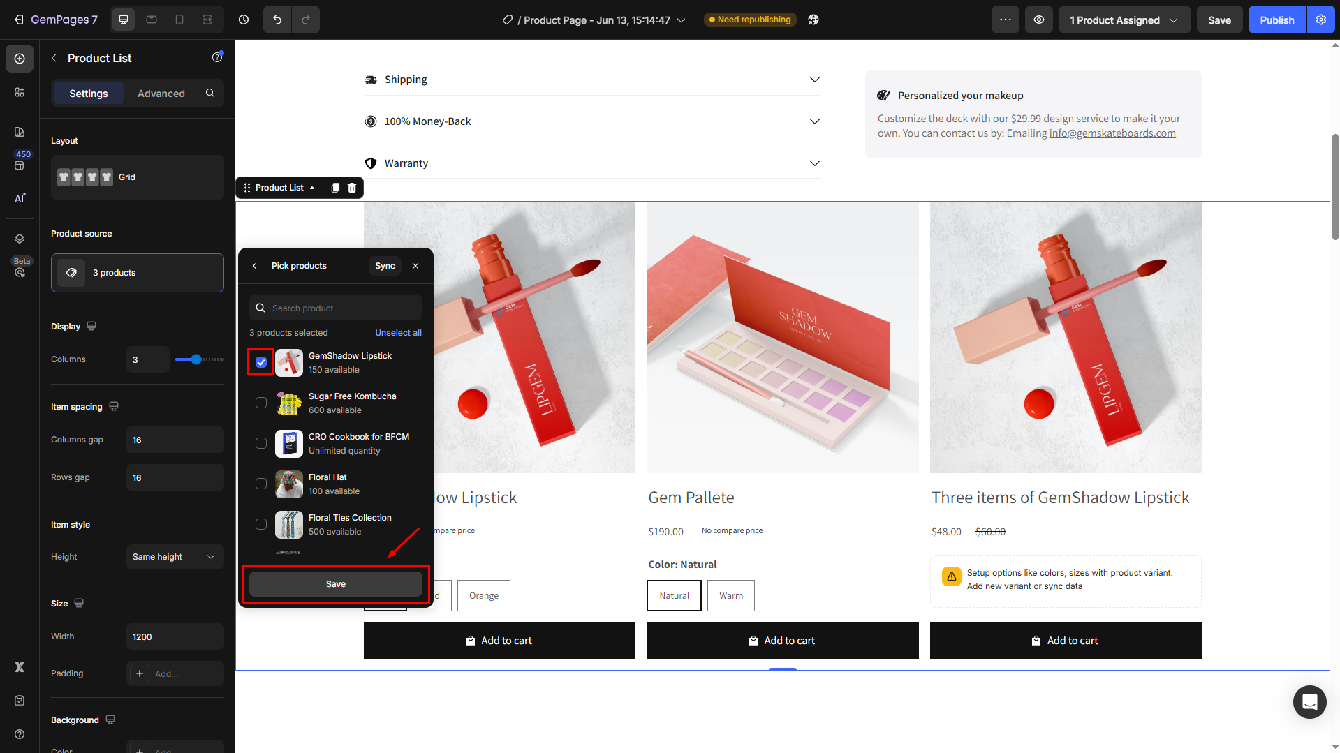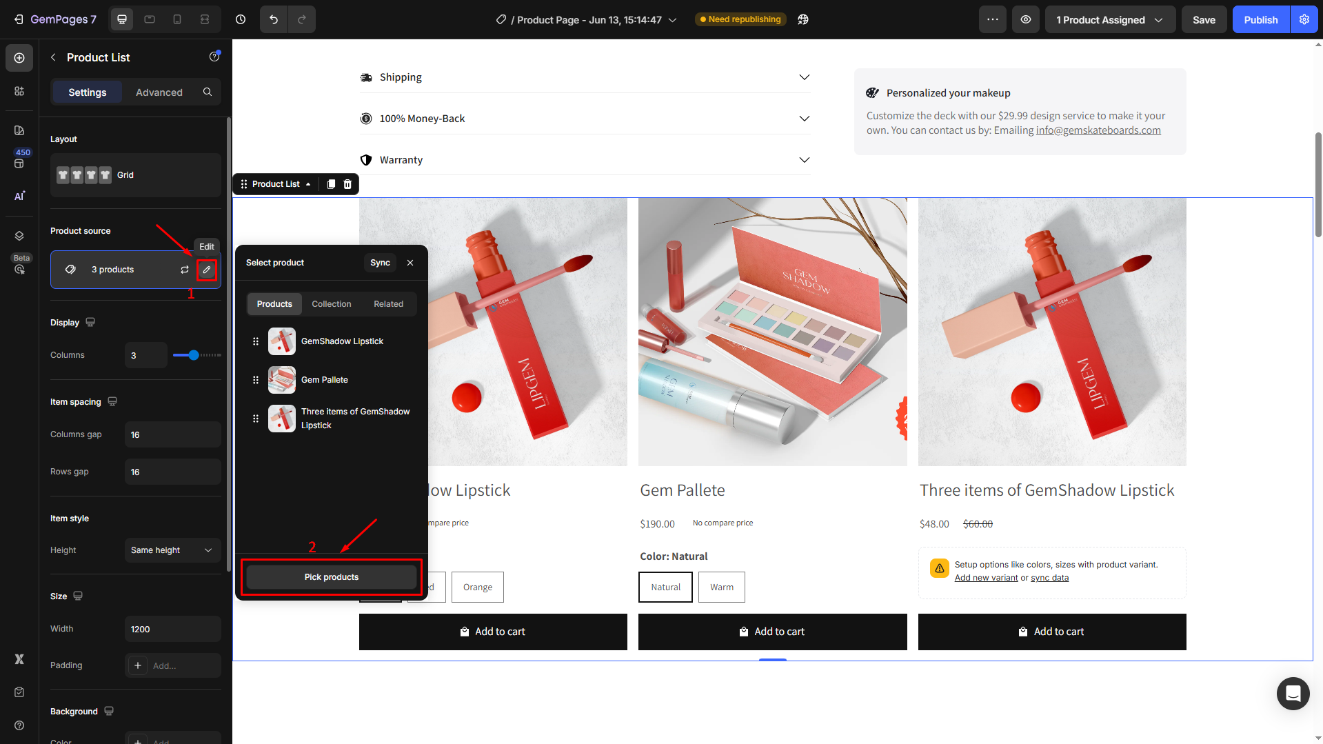 Step 1: In the GemPages dashboard, open the page that includes the product you want to update.