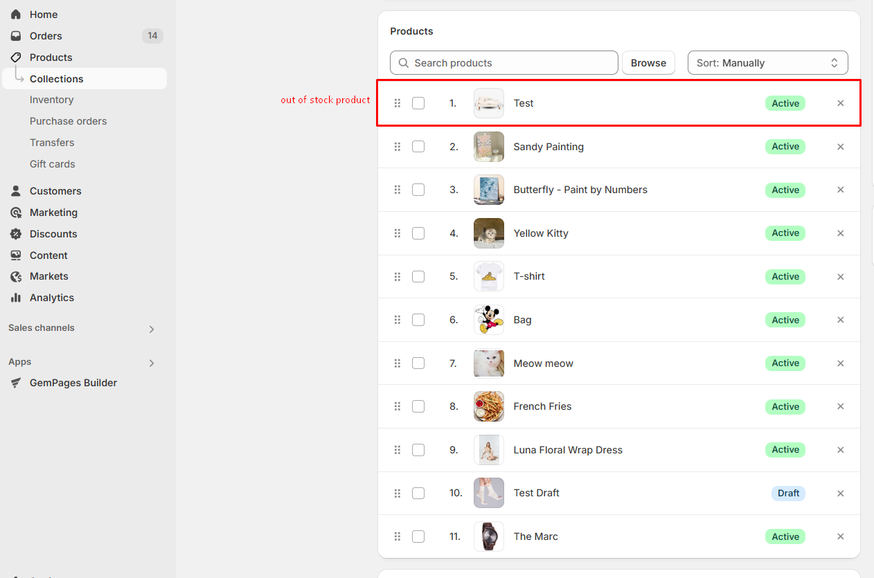 - In this case, you will need to consider removing the out-of-stock product from the collection in Shopify.