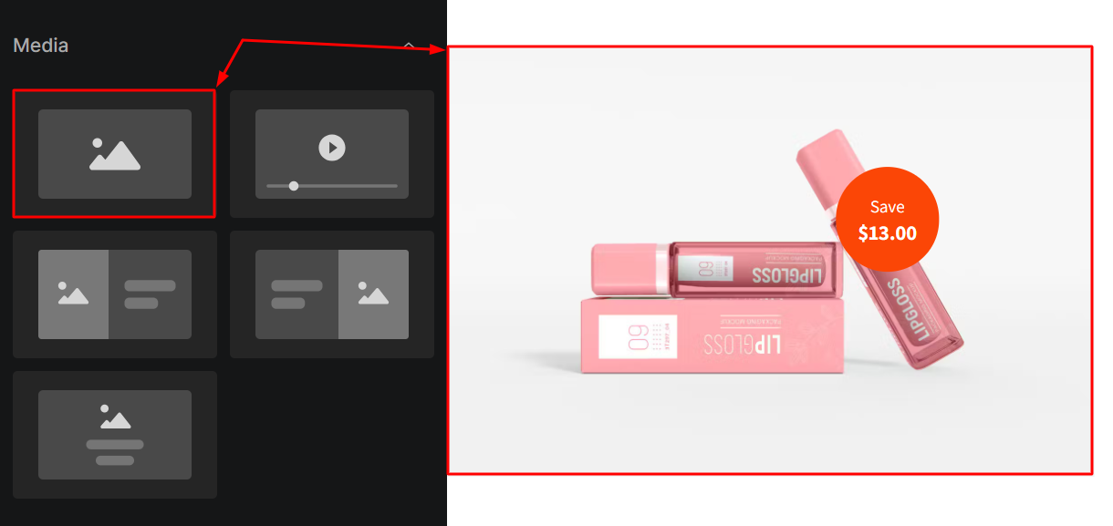 Whether you want to emphasize a product highlight, illustrate your brand’s aesthetic, or create visual separation between sections, the Image element gives you full control over how images appear across devices.