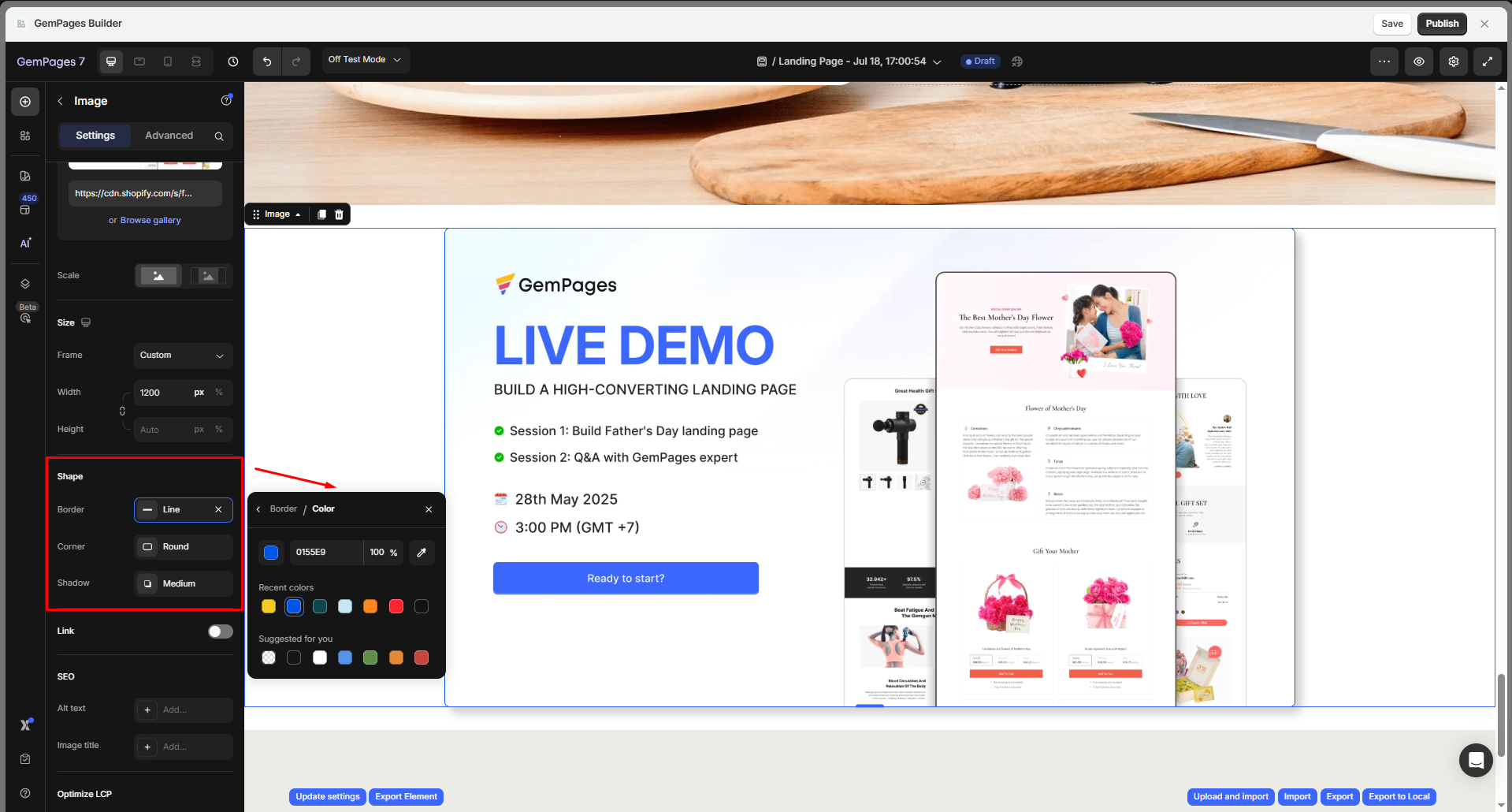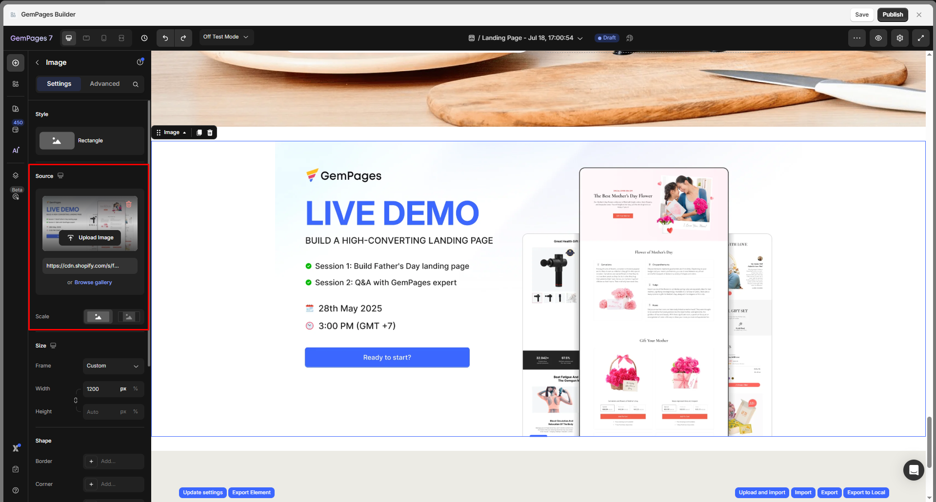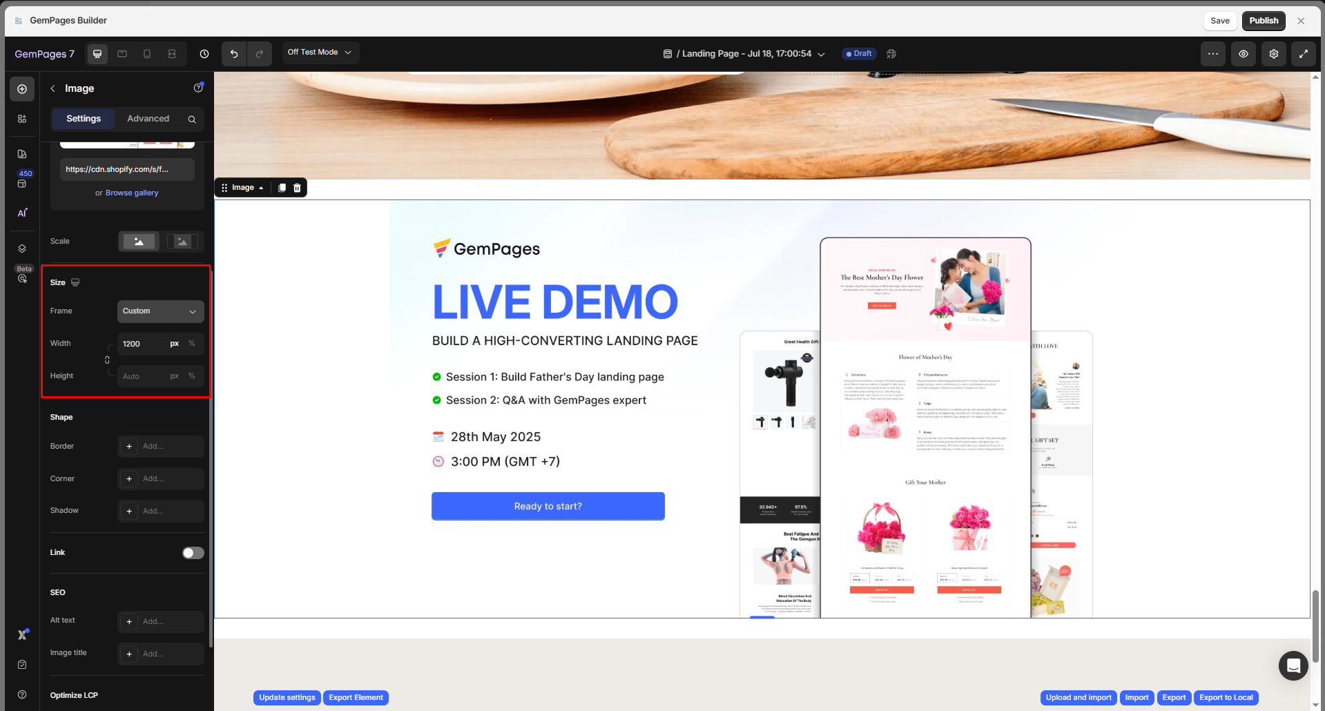 The Image element in GemPages allows you to display single images on your page, which is ideal for showcasing products, banners, brand visuals, promotions, or trust badges.
