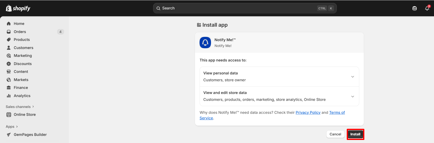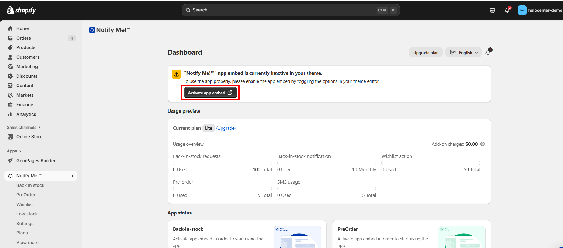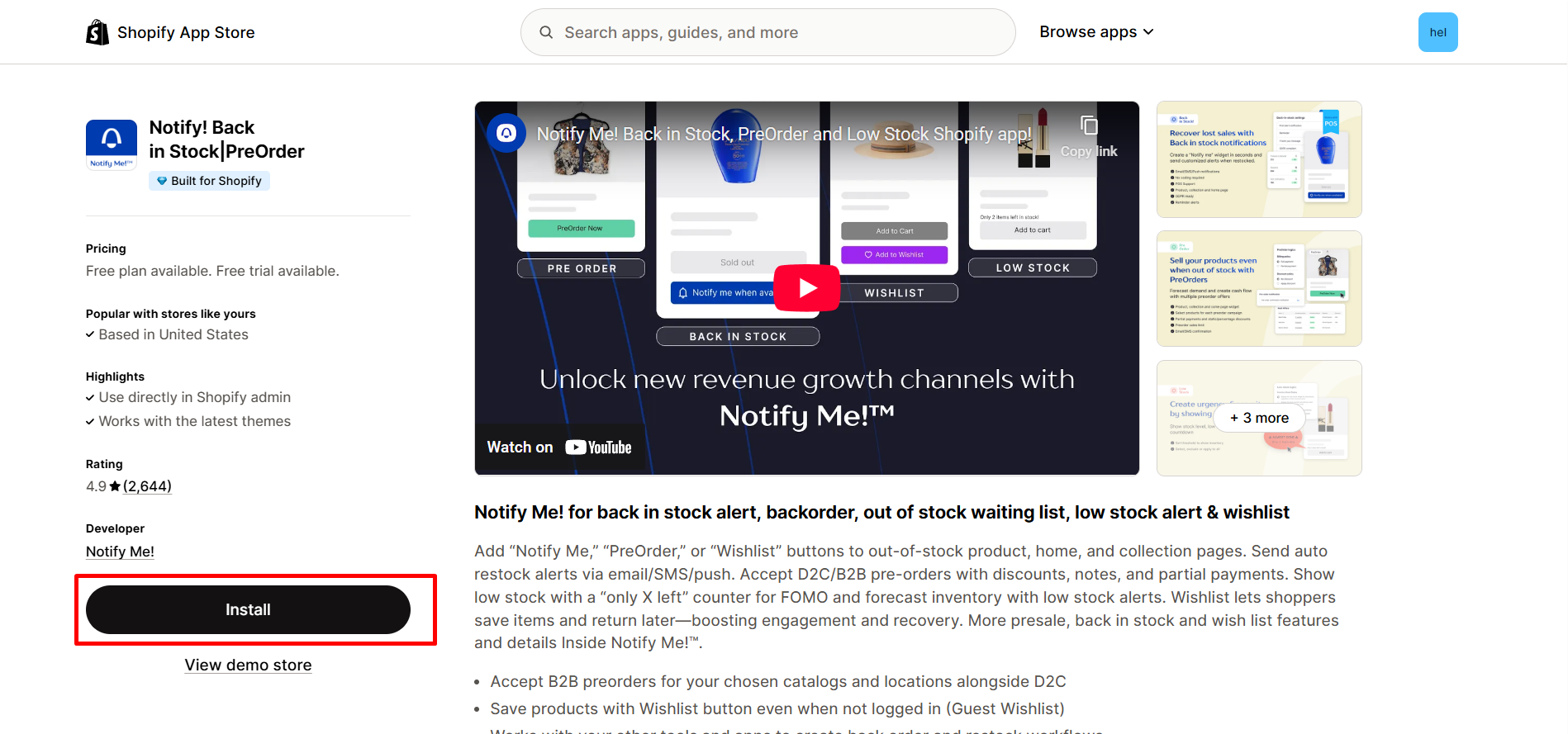 Step 1: Install Notify! Back in Stock | PreOrder in the Shopify App Store.