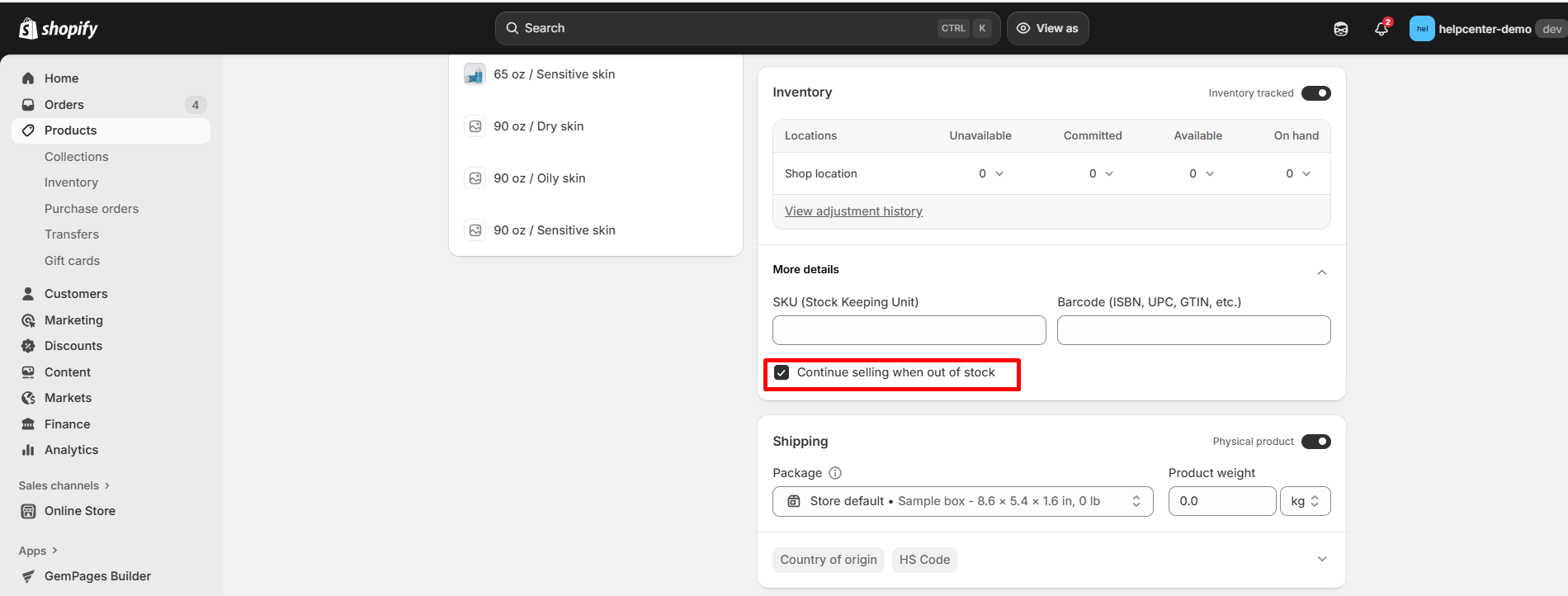 Note: To ensure the button displays correctly, click on the product and select the option to “Continue selling when out of stock”.
