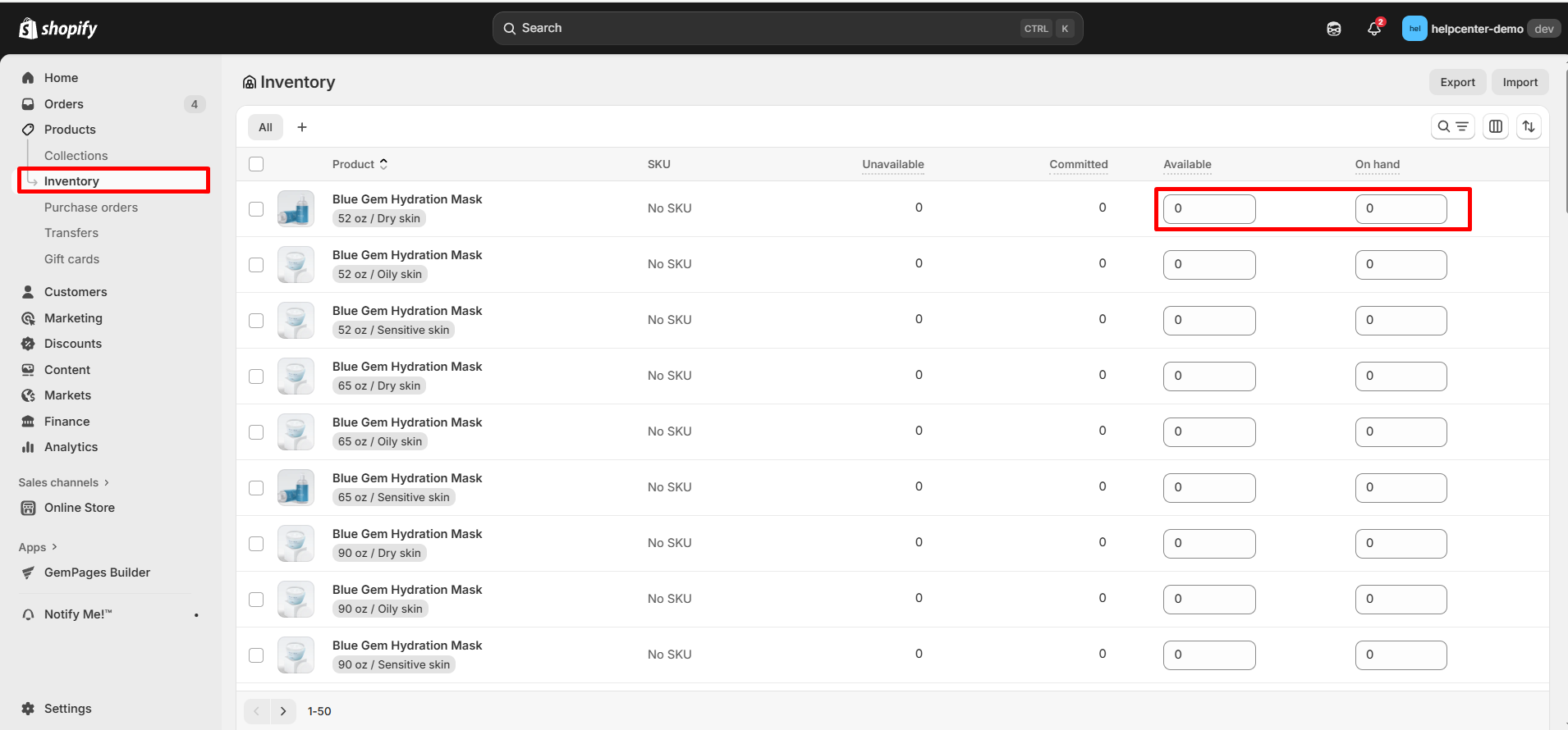 Step 6: Go to Product > Inventory and set a product quantity to zero.