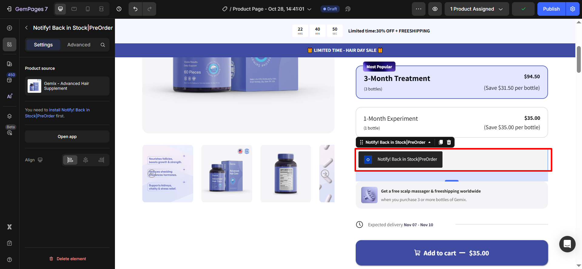 How to Add the Notify! Back in Stock | PreOrder app element to GemPages v7?
