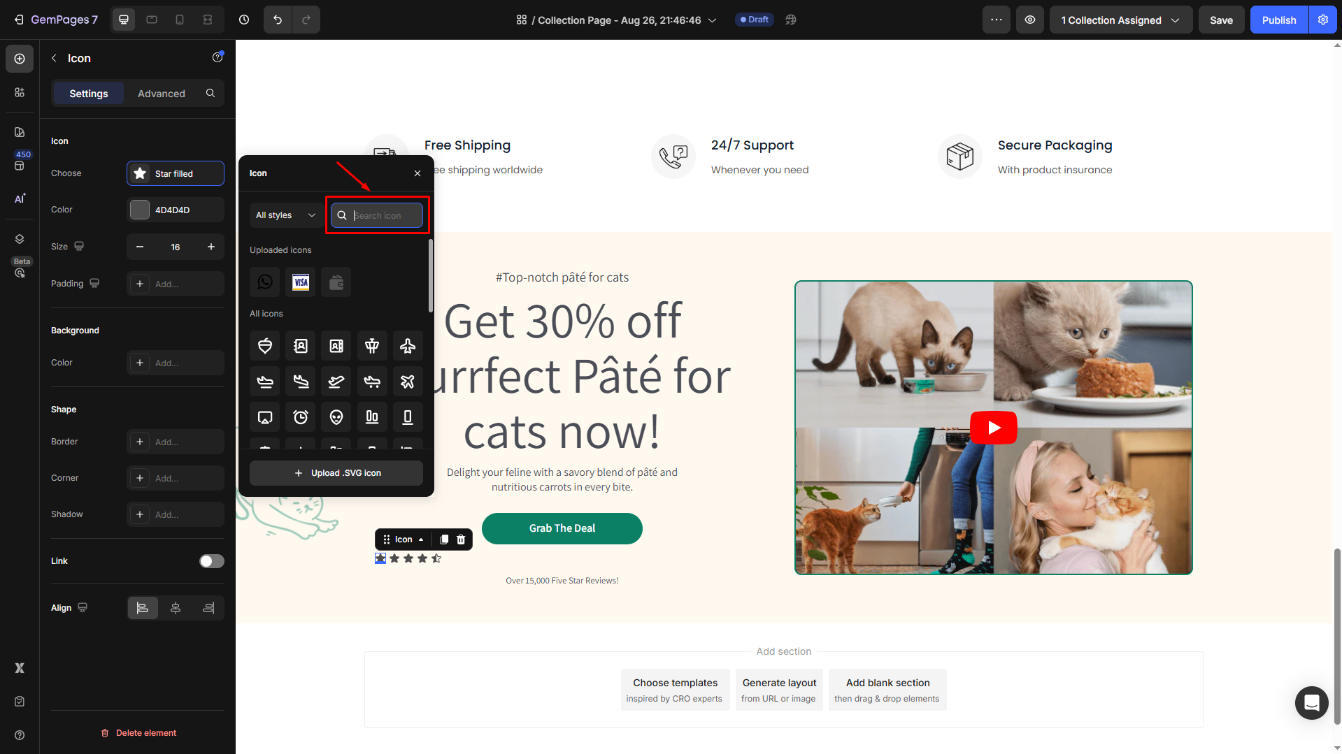 Follow these steps to upload your custom icons to GemPages: