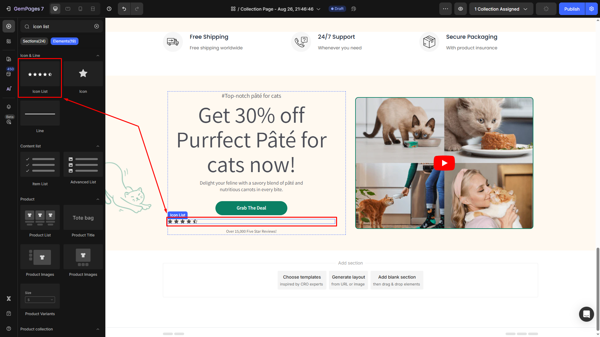 Step 1: In the editor, drag and drop the Icon Element or Icon List Element to the desired position on your page.