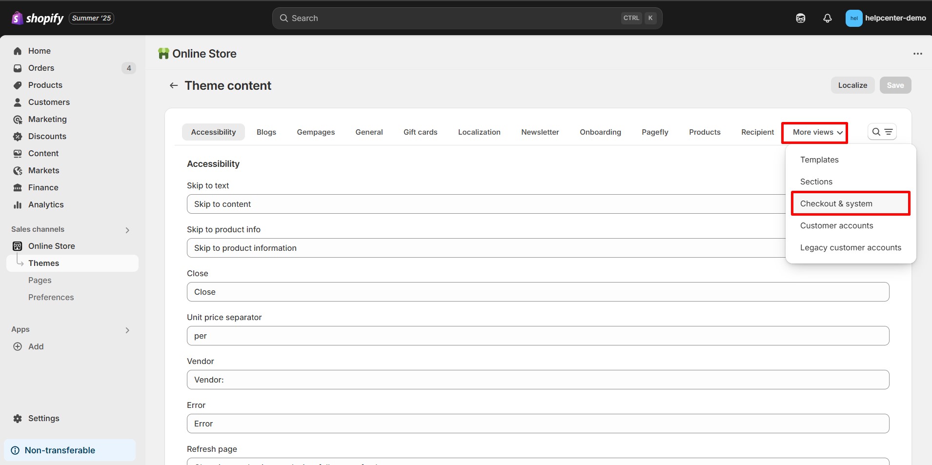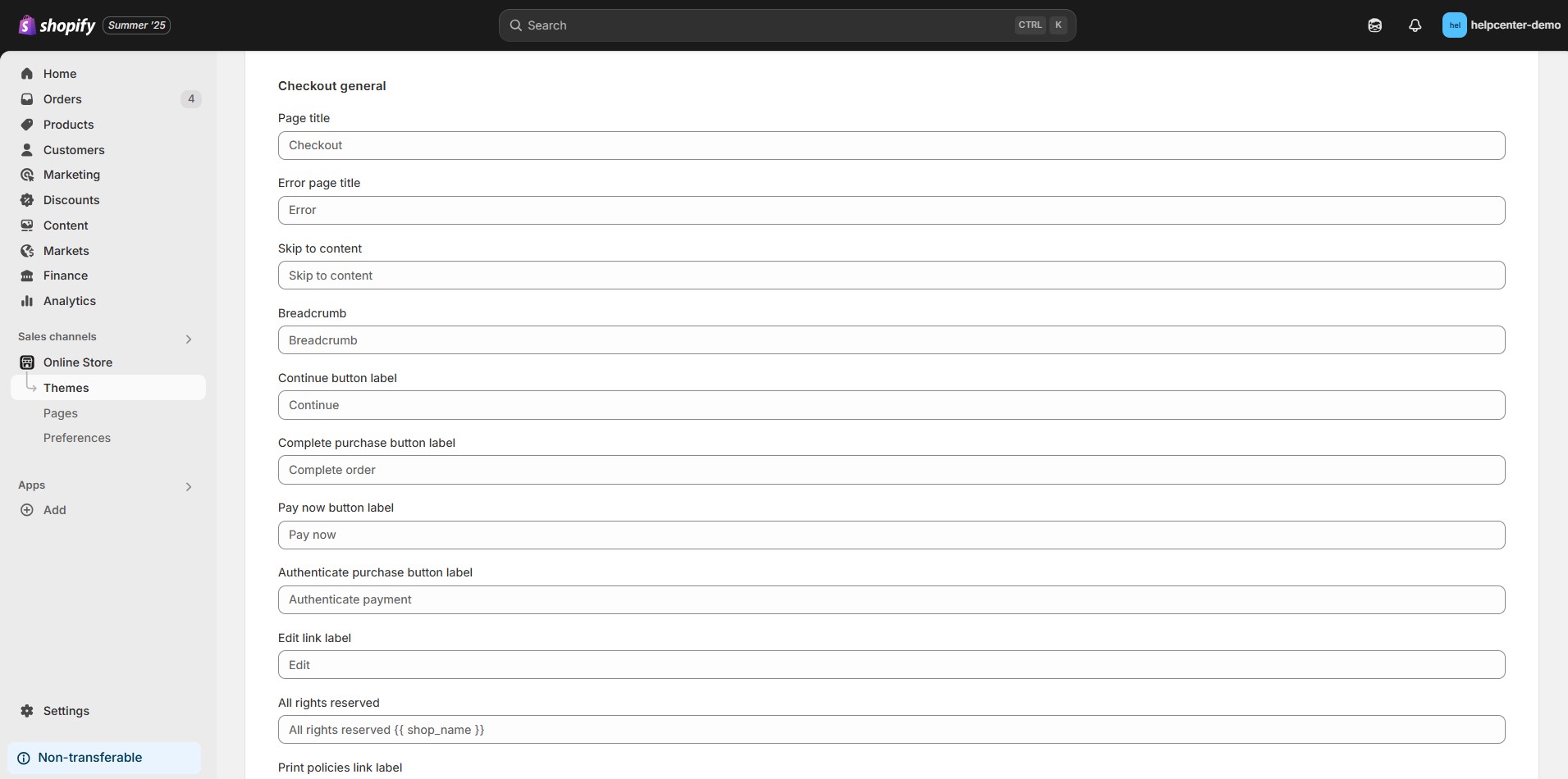 Step 1: Log in to your Shopify store > Online Store > Themes > Customize button > Edit default theme content.
