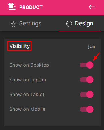 Please proceed to the GemPages Editor and verify the visibility of your Product Module or the elements that are positioned over the Product Module. Ensure that the corresponding switch is turned on.
