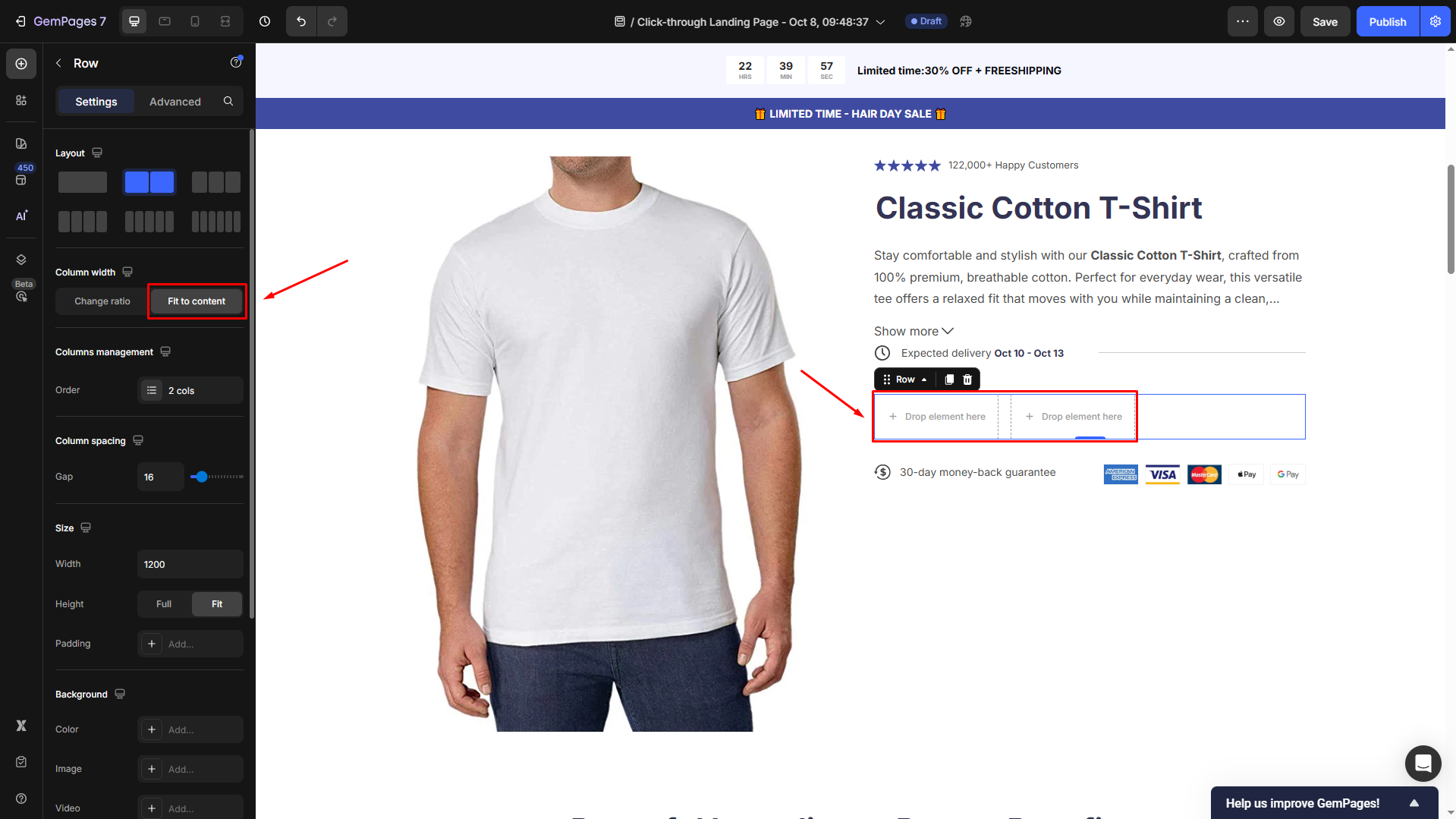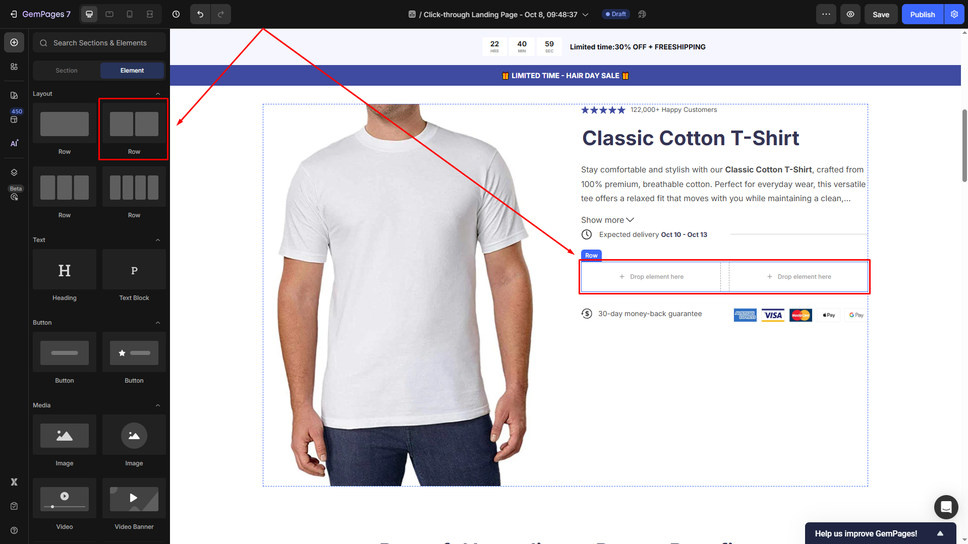 You can use the GemPages’ drag-and-drop functionality directly to make your buttons display side by side.