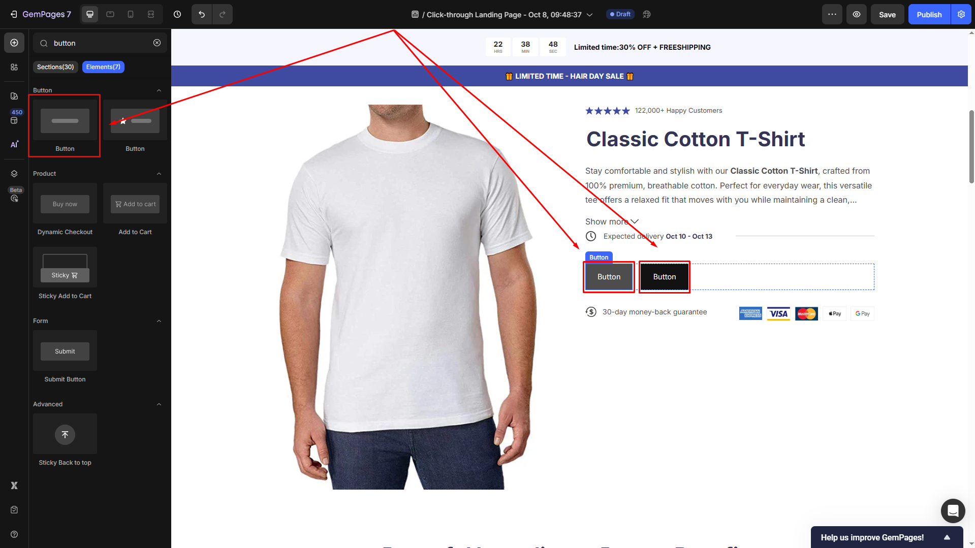 The Button element is an interactive element that prompts users to take specific actions on your website. If you want to put Buttons side by side in GemPages, you have two effective methods.